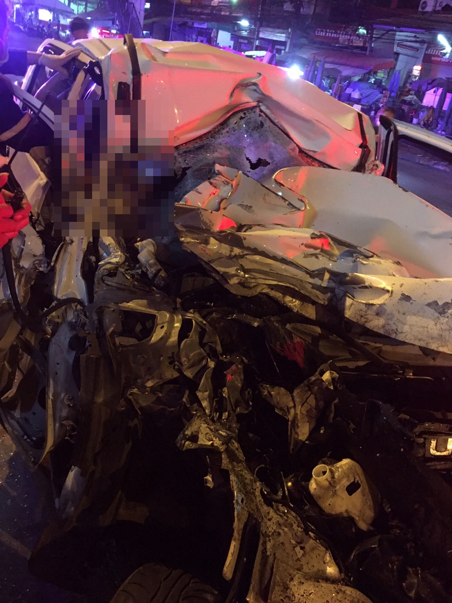 รถกระบะ ชนกับรถบรรทุก กลางถนนเพชรเกษม คนขับเสียชีวิต จ.นครปฐม