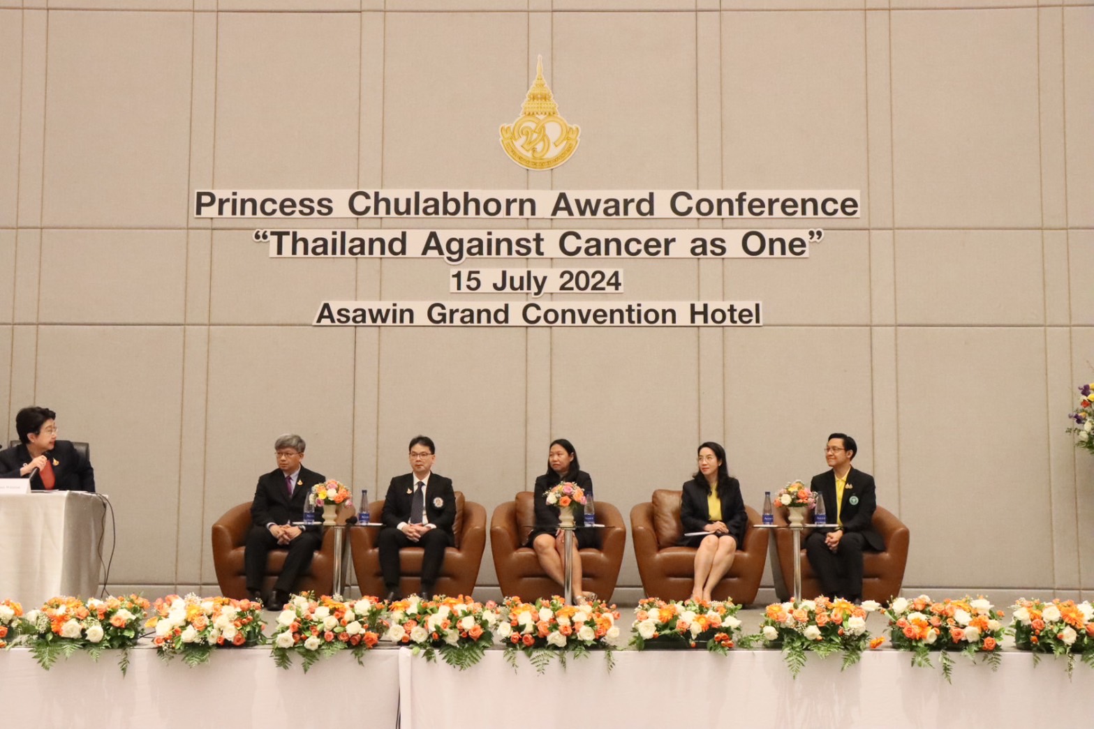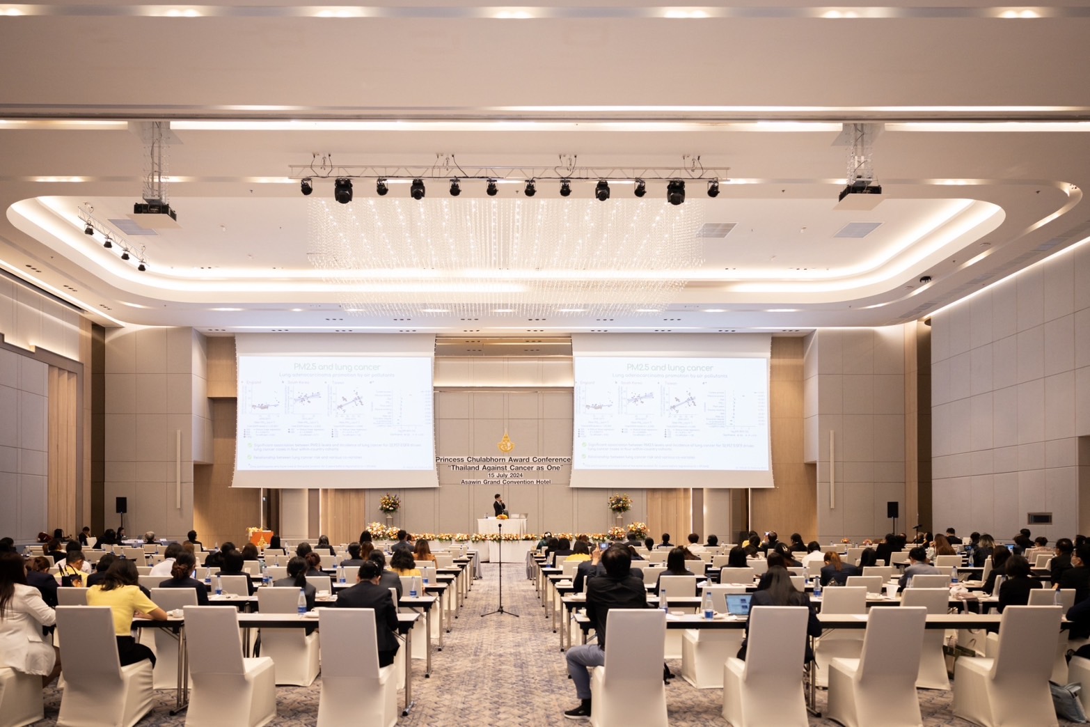 กรุงเทพฯ 15 กรกฎาคม 2567 : มูลนิธิรางวัลสมเด็จเจ้าฟ้าจุฬาภรณ์ ในพระอุปถัมภ์ สมเด็จพระเจ้าน้องนางเธอ เจ้าฟ้าจุฬาภรณวลัยลักษณ์ อัครราชกุมารี กรมพระศรีสวางควัฒน วรขัตติยราชนารี จัดการประชุมวิชาการรางวัลสมเด็จเจ้าฟ้าจุฬาภรณ์ ครั้งที่ 1 ภายใต้แนวคิด “ Thailand Against Cancer as One “ ณ โรงแรมอัศวิน แกรนด์ คอนเวนชั่น เขตหลักสี่ กรุงเทพมหานคร ทั้งนี้เพื่อเป็นการสนับสนุนให้เกิดการบูรณาการขับเคลื่อนนโยบายสุขภาพที่สำคัญในด้านการตรวจคัดกรอง และการป้องกันโรคมะเร็งในประเทศไทย โดยความร่วมมือจากหน่วยงานที่มีส่วนสำคัญในการผลักดันและขับเคลื่อนนโยบายระดับชาติร่วมเป็นเจ้าภาพจัดการประชุมวิชาการ ได้แก่ ราชวิทยาลัยจุฬาภรณ์ กระทรวงการต่างประเทศ กระทรวงการอุดมศึกษา วิทยาศาสตร์ วิจัยและนวัตกรรม กระทรวงสาธารณสุข ตลอดจนนักวิชาการและผู้เชี่ยวชาญด้านมะเร็งในประเทศไทย โดยมุ่งเน้นในเรื่องของมะเร็งเต้านม มะเร็งปากมดลูก มะเร็งตับ และมะเร็งลำไส้ใหญ่และไส้ตรง ซึ่งได้รับเกียรติจากผู้ทรงคุณวุฒิจากหลายหน่วยงานที่ได้มาร่วมแลกเปลี่ยนประสบการณ์ทางวิชาการด้านมะเร็ง อาทิ คณะแพทยศาสตร์ศิริราชพยาบาลมหาวิทยาลัยมหิดล คณะแพทยศาสตร์ โรงพยาบาลรามาธิบดี มหาวิทยาลัยมหิดล วิทยาลัยแพทยศาสตร์ศรีสวางควัฒน ราชวิทยาลัยจุฬาภรณ์ คณะเทคโนโลยีสุขภาพ ราชวิทยาลัยจุฬาภรณ์ คณะแพทยศาสตร์ จุฬาลงกรณ์มหาวิทยาลัย คณะแพทยศาสตร์ มหาวิทยาลัยเชียงใหม่ และกระทรวงสาธารณสุข