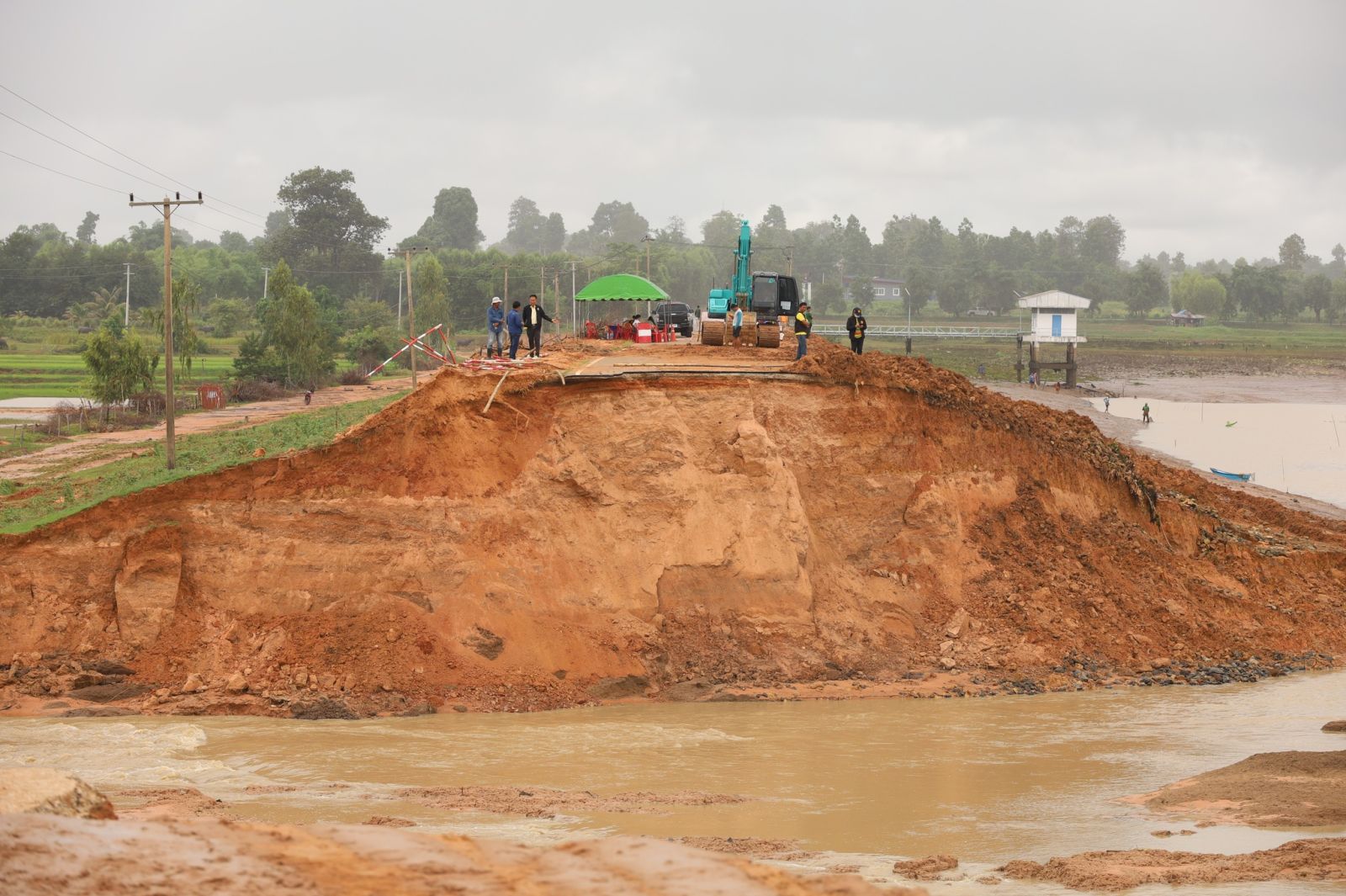 สถานการณ์น้ำปัจจุบันระดับน้ำอยู่ต่ำกว่าระดับกัดเซาะ โดยโครงการชลประทานมหาสารคาม ดำเนินการก่อสร้างทำนบดินชั่วคราว เหนือช่องขาด เพื่อปิดกั้นช่องขาดพร้อมทั้งเสริมความแข็งแรงด้วยกล่อง gabion บรรจุหินใหญ่ เพื่อป้องกันน้ำไหลผ่านและให้สามารถเก็บกักน้ำได้ ระยะเวลาดำเนินการ 1-2 วัน และดำเนินการก่อสร้างตัวเขื่อน ให้กลับคืนสู่สภาพเดิมในส่วนของประชาชนที่ได้รับความเดือดร้อน จังหวัดมหาสารคามได้ตั้งศูนย์ให้ความช่วยเหลือและอพยพประชาชนที่ได้รับผลกระทบ ณ โรงเรียนบ้านโคกกลางบ่อหลุบ ต.โนนราษี อ.บรบือ