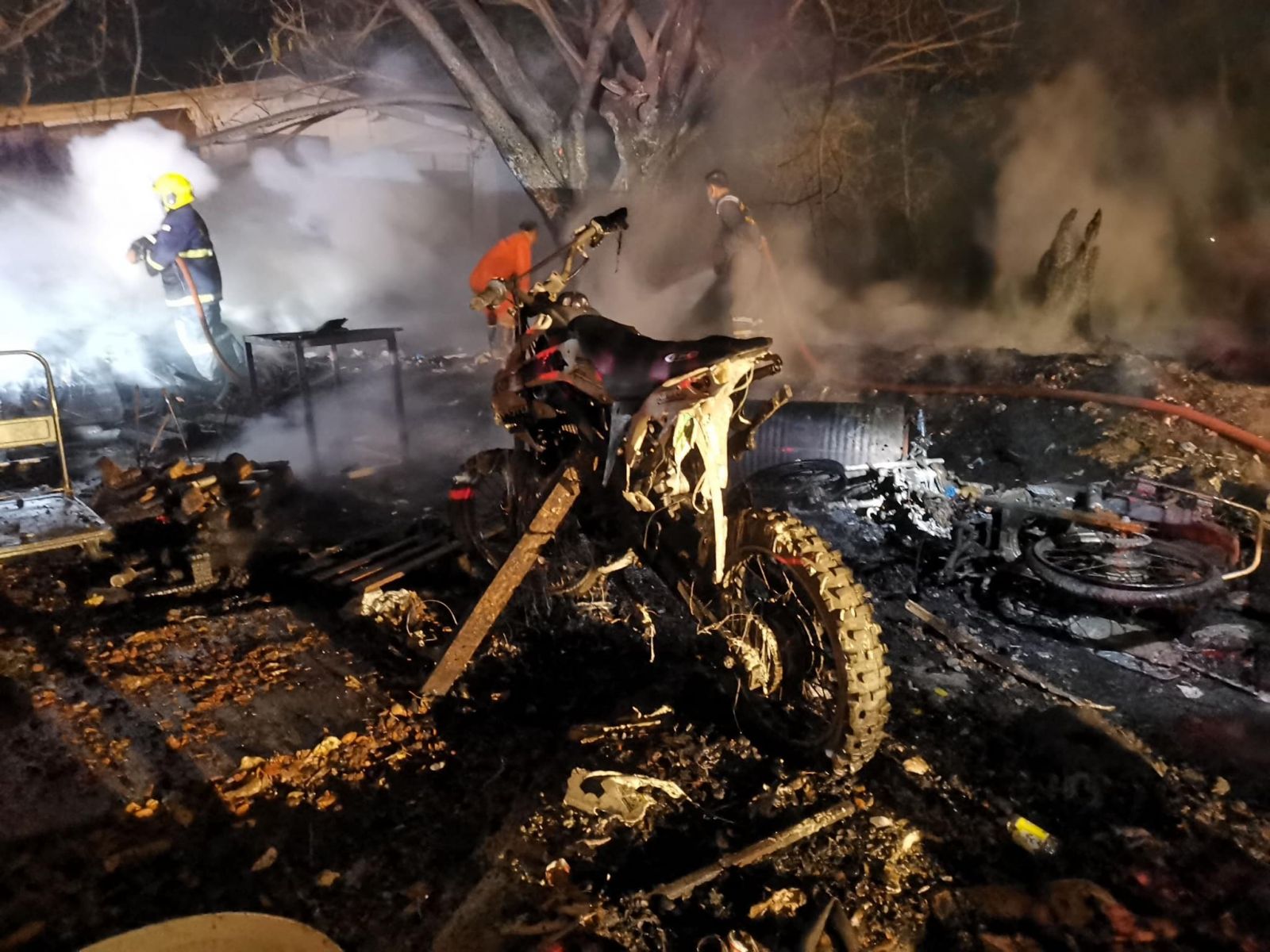 ไฟไหม้กองไม้พาเลท ซอยบางปลา 24 แล้วลุกลามเพิงขายอาหาร และรถจักรยานยนต์เสียหายวอด จ.สมุทรปราการ