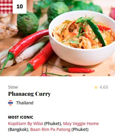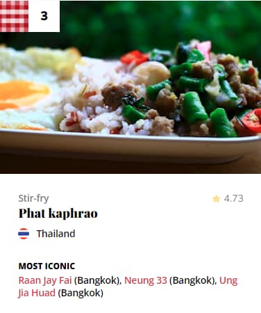 วันที่ 18 กรกฎาคม 2567 เว็บไซต์อาหารชื่อดัง tasteatlas ล่าสุดได้จัดอันดับ 100 เมนูที่ดีที่สุดแต่ละประเทศ พบว่า ประเทศไทยติดถึง 3 เมนู ใน 10 อันดับ ได้แก่ ผัดกะเพรา อันดับ 3, ข้าวซอย อันดับ 6 และแกงพะแนง อันดับ 10