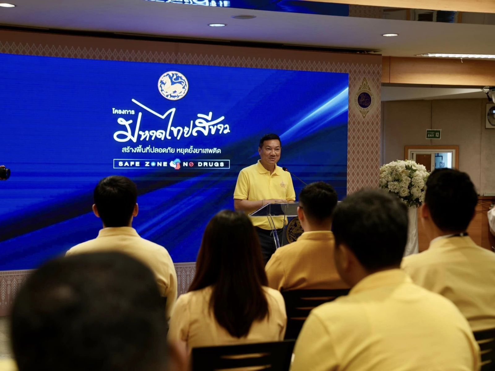 วันศุกร์ที่ 19 กรกฎาคม 2567 ณ กรมการปกครอง กระทรวงมหาดไทย นายอรรษิษฐ์ สัมพันธรัตน์ อธิบดีกรมการปกครอง นำข้าราชการ พนักงาน ลูกจ้าง สมาชิกกองอาสารักษาดินแดน “KICK OFF โครงการมหาดไทยสีขาว พร้อมกันทั่วประเทศ” เพื่อเตรียมบันทึกข้อตกลงความร่วมมือการป้องกันและแก้ไขปัญหายาเสพติดระหว่างกระทรวงศึกษาธิการ และกระทรวงการอุดมศึกษา วิทยาศาสตร์ วิจัย และนวัตกรรม ซึ่งเห็นพ้องร่วมกันในการแก้ไขปัญหายาเสพติดที่เป็นภัยอันตราย ส่งผลต่อการพัฒนาประเทศและก่อให้เกิดปัญหา ทางสังคมที่บั่นทอนเศรษฐกิจและความมั่นคงของประเทศ โดยเฉพาะด้านการพัฒนาทรัพยากรมนุษย์ ซึ่งการแก้ไขปัญหายาเสพติด ที่สำคัญ จะต้องใช้มาตรการป้องกัน และสร้างภูมิคุ้มกันให้แก่เด็ก เยาวชน และประชาชน มิให้เข้าไปเกี่ยวข้องกับยาเสพติดสำหรับการลดจำนวนผู้เสพ/ผู้ติดยาเสพติด (Demand) โดยเฉพาะผู้เสพหน้าใหม่ (New Face) ซึ่งเป็นเด็กและเยาวชนที่อยู่ในระบบการศึกษา จะต้องอาศัยความร่วมมือกับสถานศึกษา โรงเรียน วิทยาลัย มหาวิทยาลัย ฯลฯ เพื่อป้องกันนักเรียน นักศึกษาเข้าไปเกี่ยวข้องกับยาเสพติด