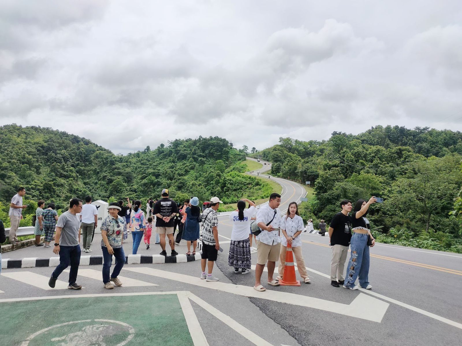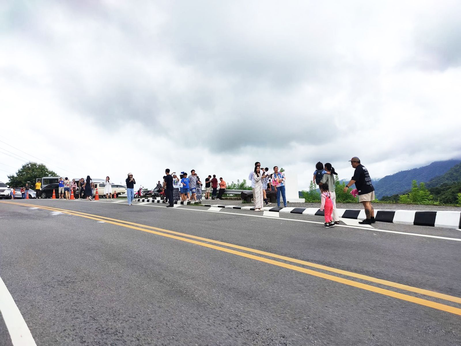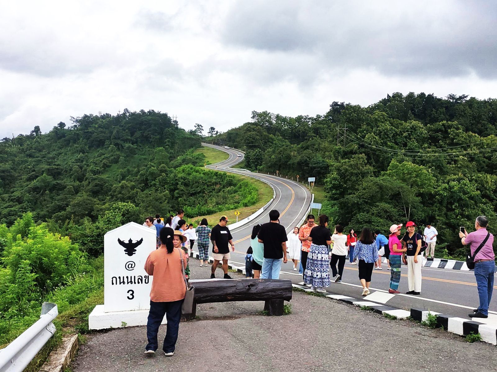 นี่น่านไง...นักท่องเที่ยวแห่ถ่ายรูปบริเวณโค้งถนนหมายเลข 3 จ.น่าน ในช่วงวันหยุดยาว ฅดดยมีเจ้าหน้าที่ตำรวจ สภ.อวน คอยอำนวยความสะดวกจัดจราจร