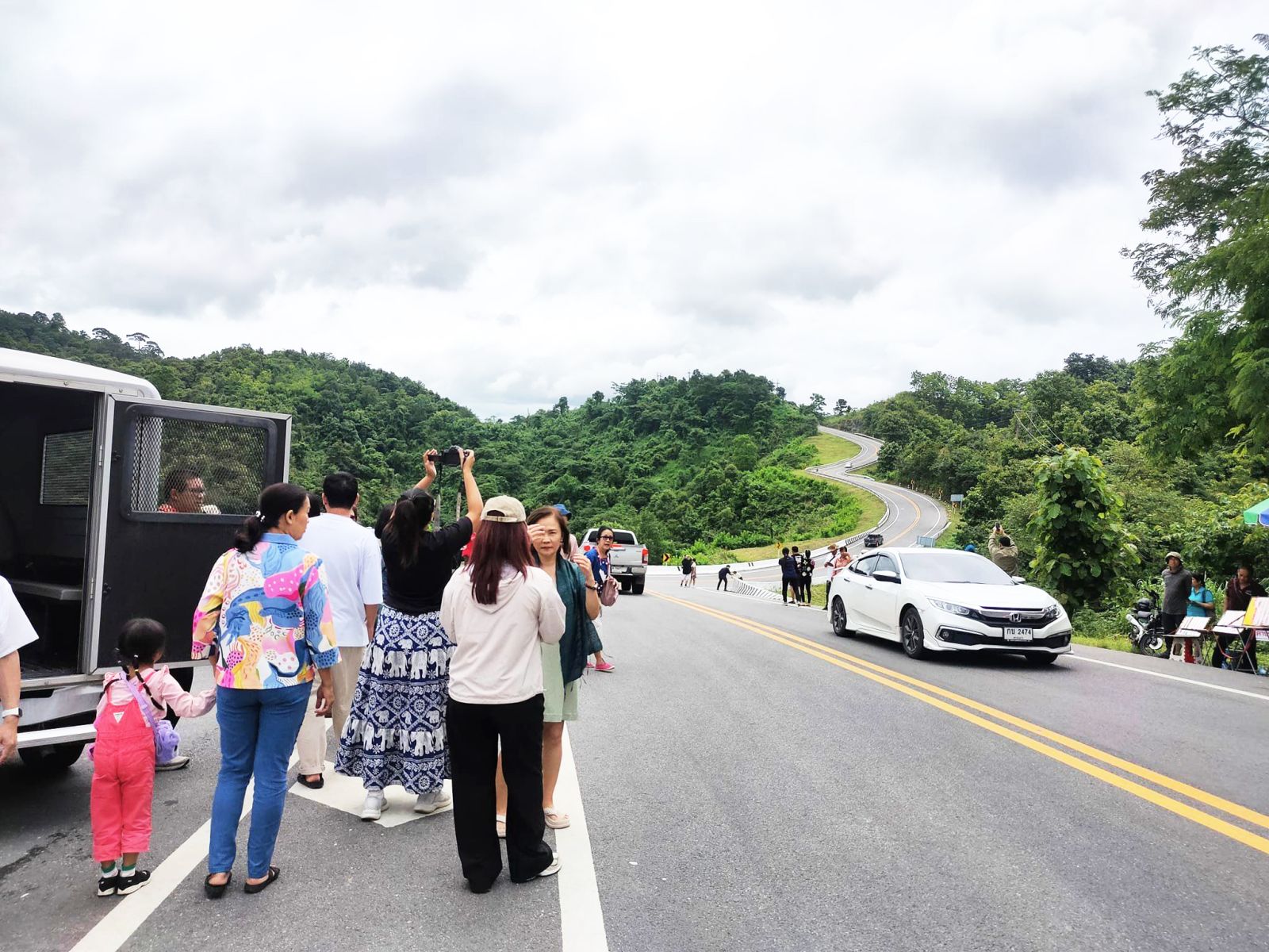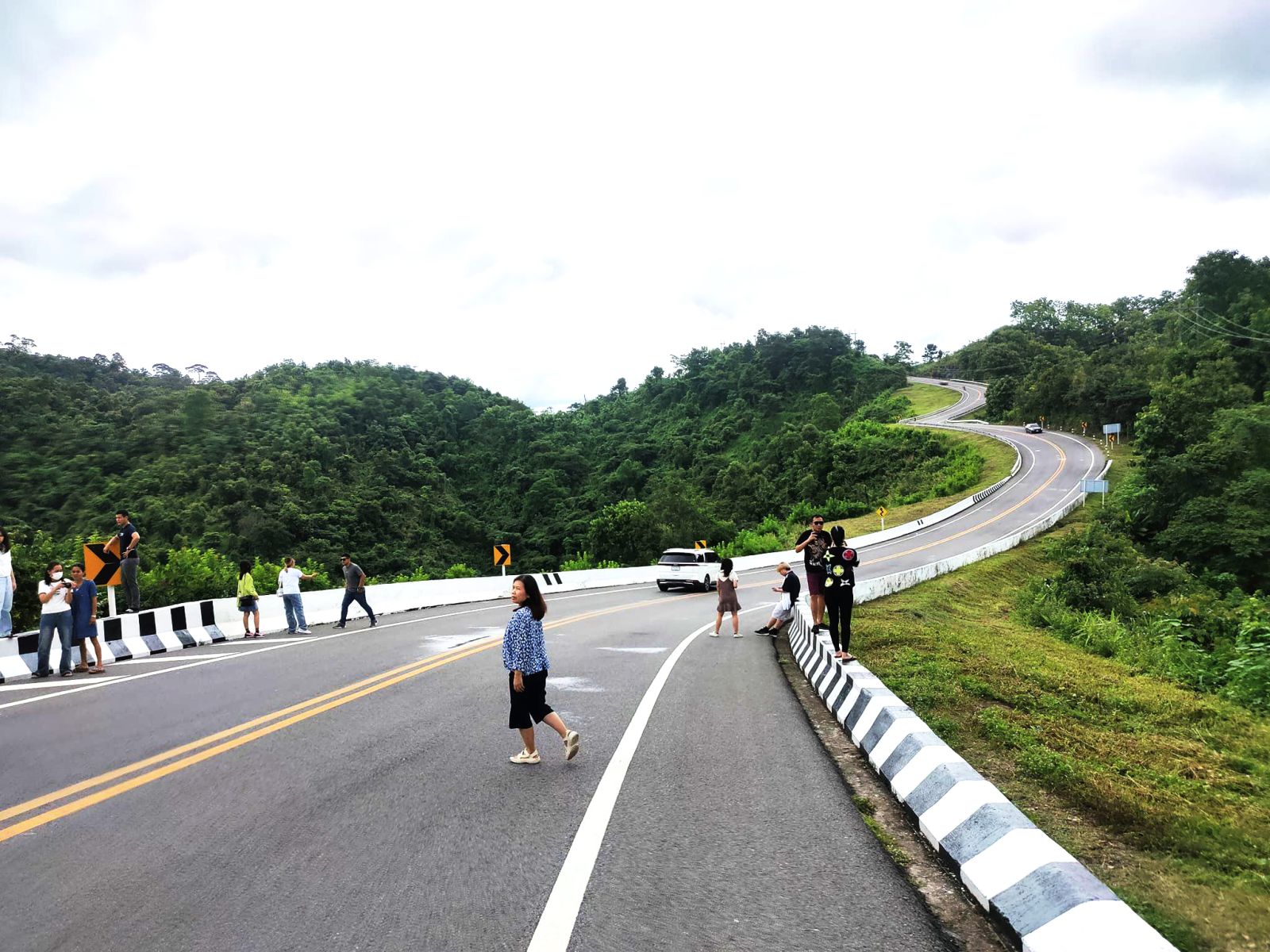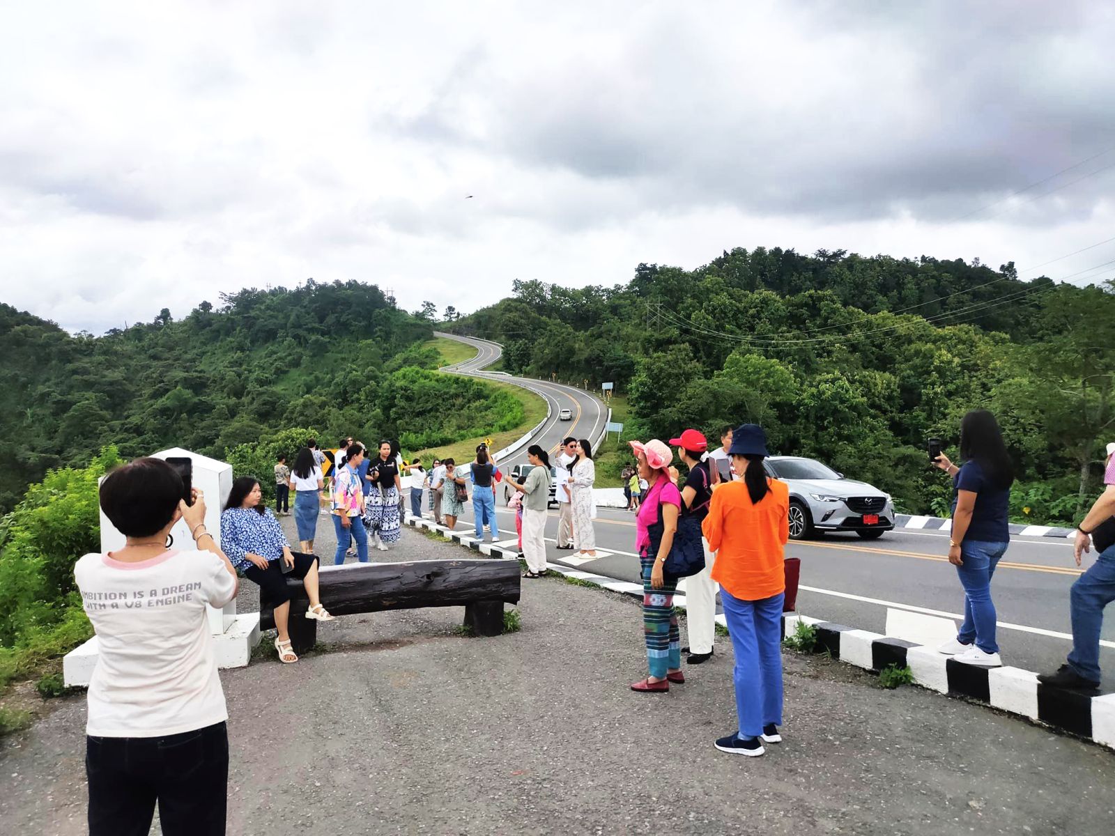 นี่น่านไง...นักท่องเที่ยวแห่ถ่ายรูปบริเวณโค้งถนนหมายเลข 3 จ.น่าน ในช่วงวันหยุดยาว ฅดดยมีเจ้าหน้าที่ตำรวจ สภ.อวน คอยอำนวยความสะดวกจัดจราจร