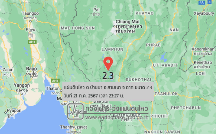 แผ่นดินไหว ขนาด 2.3 ที่เมืองสามเงา จังหวัดตาก
