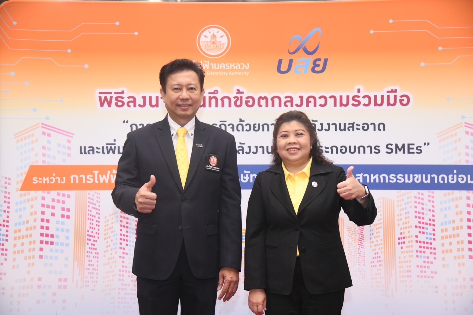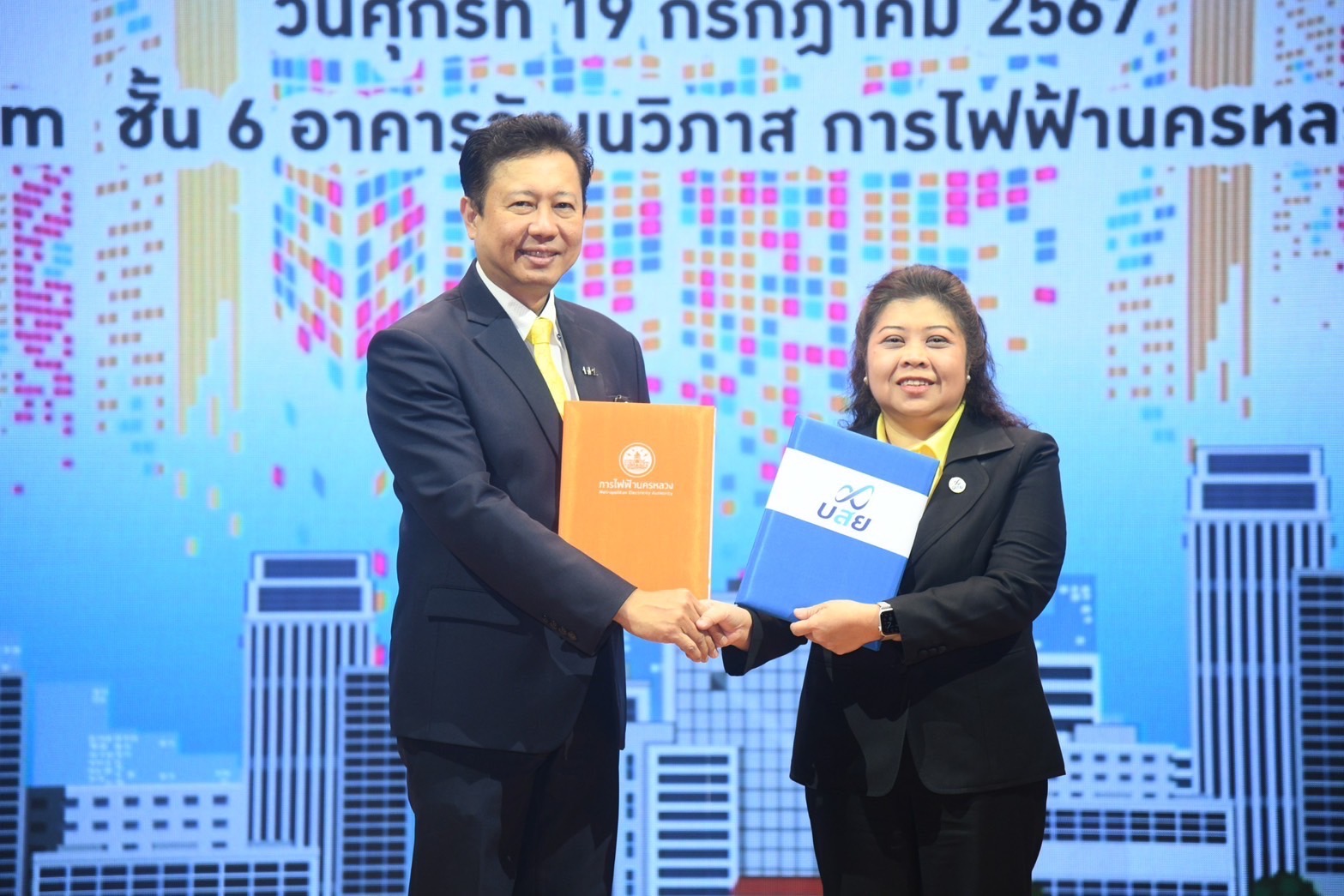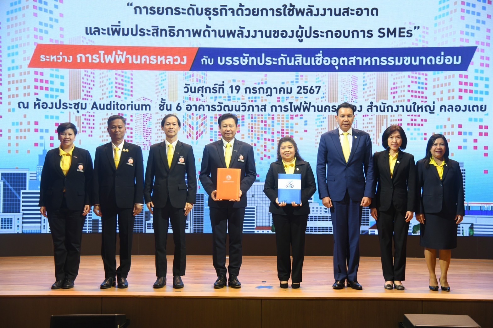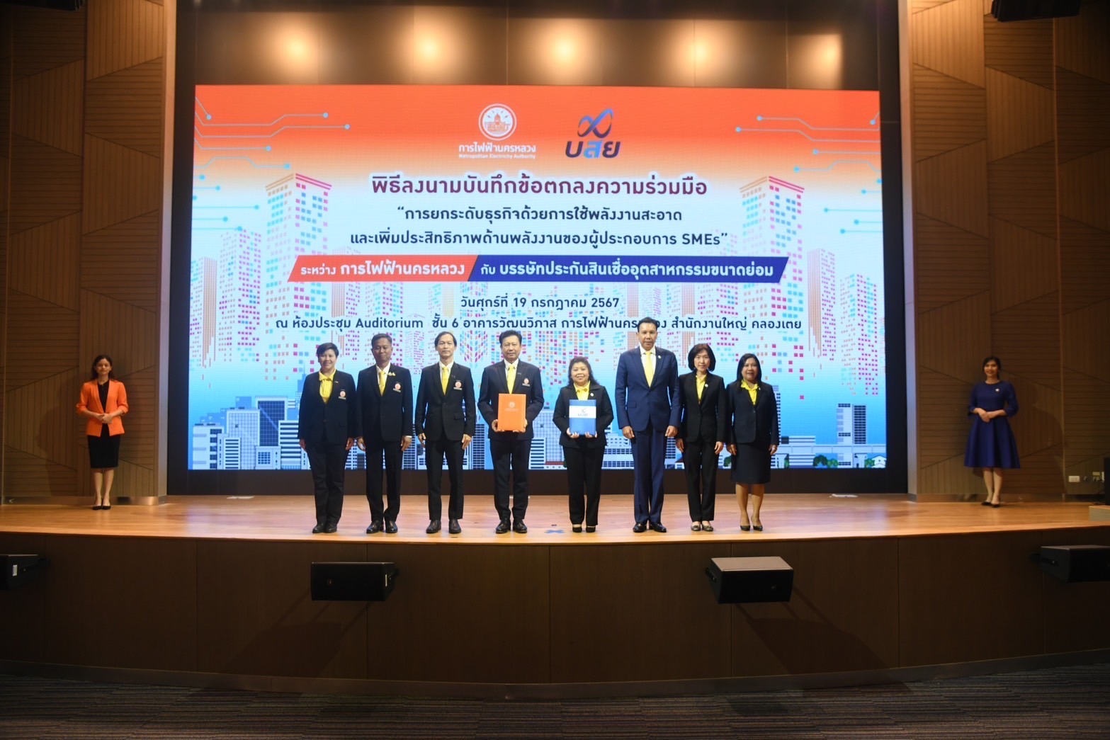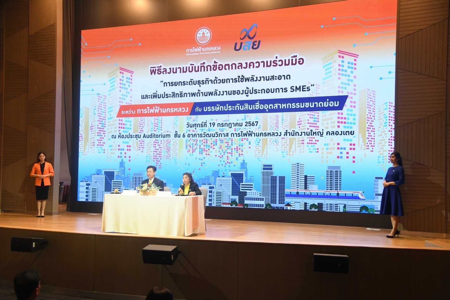 วันที่ 19 กรกฎาคม 2567 นายจาตุรงค์ สุริยาศศิน รองผู้ว่าการ MEA หรือการไฟฟ้านครหลวง พร้อมด้วย นางดุสิดา ทัพวงษ์ รองผู้จัดการทั่วไปอาวุโส บรรษัทประกันสินเชื่ออุตสาหกรรมขนาดย่อม (บสย.) ร่วมพิธีลงนามบันทึกข้อตกลงความร่วมมือ โครงการ "การยกระดับธุรกิจด้วยการใช้พลังงานสะอาดและเพิ่มประสิทธิภาพด้านพลังงานของผู้ประกอบการ SMEs" เพื่อส่งเสริมให้ผู้ประกอบการ SMEs สามารถเข้าถึงพลังงานสะอาดและการบริการด้านพลังงานได้อย่างมีประสิทธิภาพ โดยมี คณะผู้บริหารจากทั้งสองหน่วยงานร่วมเป็นเกียรติในพิธี ณ อาคารวัฒนวิภาส การไฟฟ้านครหลวง สำนักงานใหญ่ คลองเตย