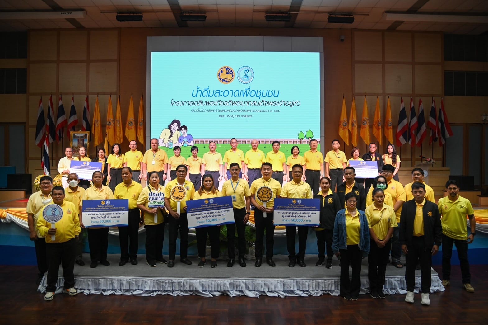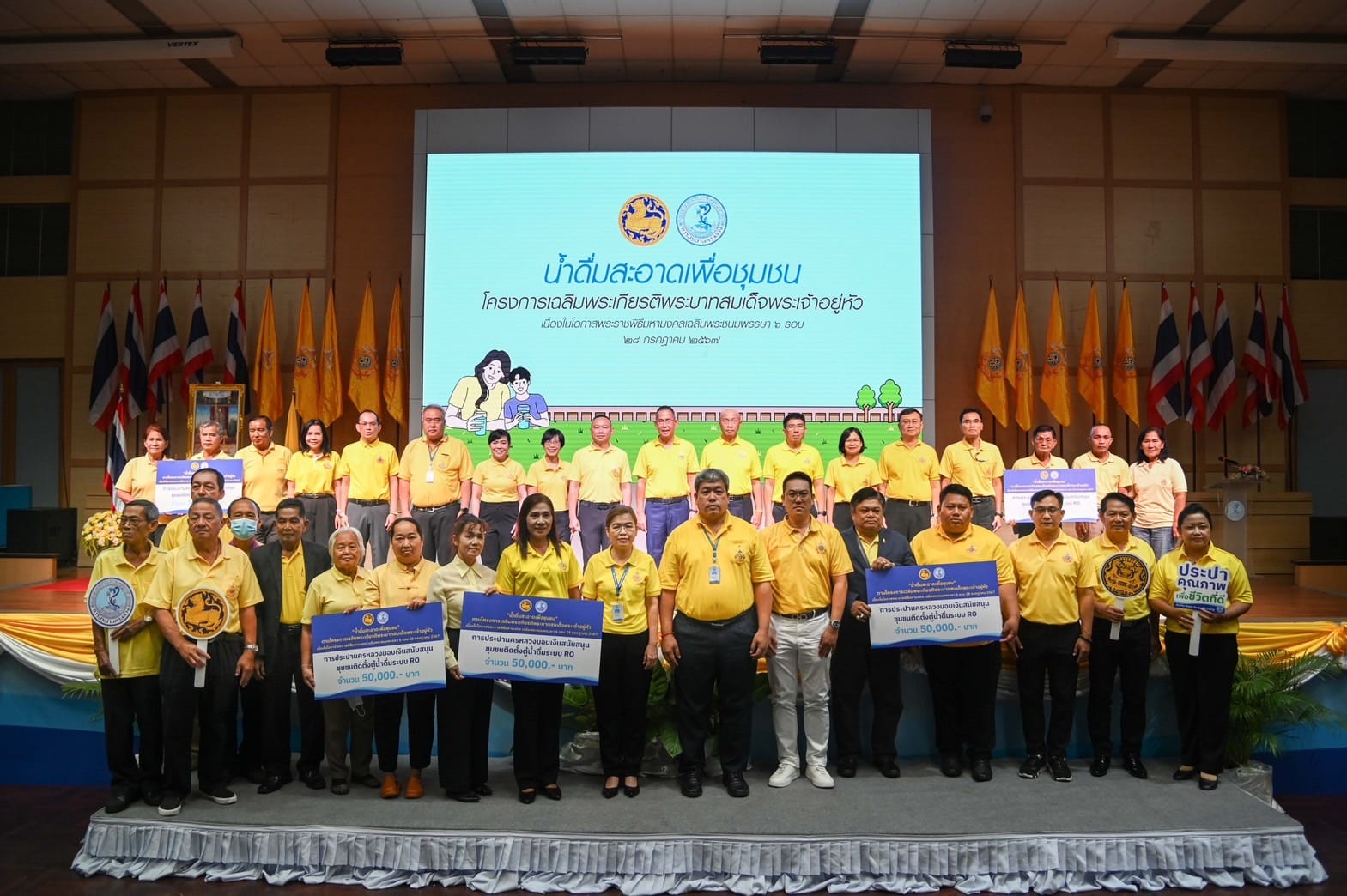 นายชัยวัฒน์ ชื่นโกสุม ประธานกรรมการ กปน. กล่าวว่า กปน. ได้ดำเนินโครงการ “น้ำดื่มสะอาดเพื่อชุมชน” เฉลิมพระเกียรติพระบาทสมเด็จพระเจ้าอยู่หัว เนื่องในโอกาสพระราชพิธีมหามงคลเฉลิมพระชนมพรรษา 6 รอบ 28 กรกฎาคม 2567 เพื่อตอบสนองนโยบาย “น้ำสะอาดฟรี ลดค่าใช้จ่ายให้ประชาชน” ของกระทรวง มหาดไทย โดยมีวัตถุประสงค์ เพื่อช่วยบรรเทาปัญหาค่าครองชีพ ลดค่าใช้จ่ายในการจัดหาน้ำสะอาดในการบริโภคของชุมชน ส่งเสริมสุขอนามัยที่ดี รวมทั้งช่วยลดขยะจากบรรจุภัณฑ์พลาสติก และร่วมกันรักษาสิ่งแวดล้อม โดยในวันนี้ กปน. ได้มอบเงินสนับสนุนให้กับชุมชนเปราะบางในพื้นที่ให้บริการ กปน. เพื่อนำไปจัดซื้อตู้น้ำดื่มระบบ Reverse Osmosis (RO) ชุมชนละ 50,000 บาท รวม 45 ชุมชน รวมเป็นเงิน 2,250,000 บาท
