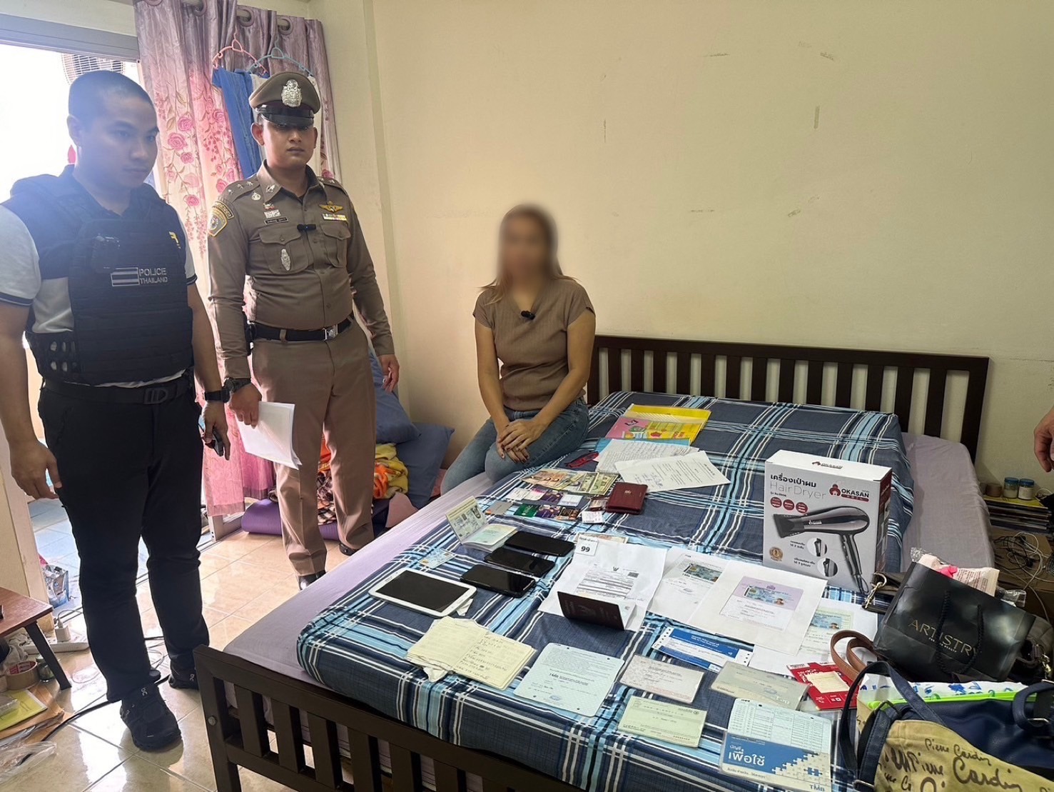 2. ห้องพักในซอยลาดพร้าว 120 แขวงวังทองหลาง เขตวังทองหลาง กรุงเทพมหานคร ตามหมายค้นศาลอาญา ลงวันที่ 25 กรกฎาคม 2567