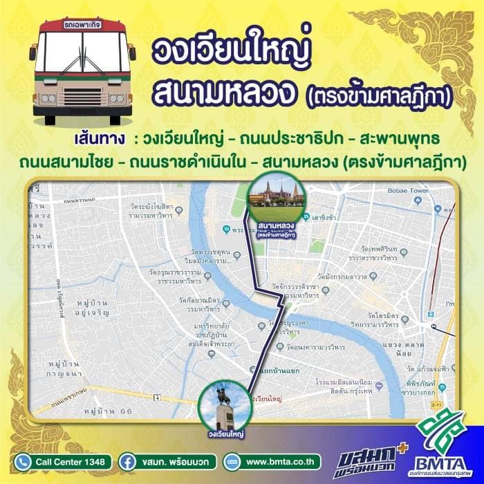5. เดินรถเป็นวงกลม เส้นทางสนามหลวง - ท่าช้าง – ท่าเตียน