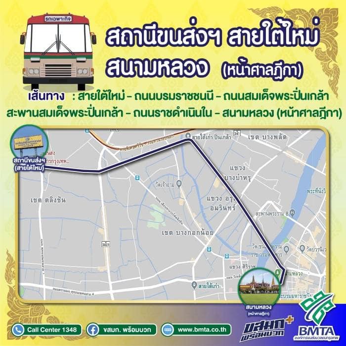 3. หมอชิต 2 - สนามหลวง : จอดรับ - ส่ง บริเวณหน้าศาลฎีกา