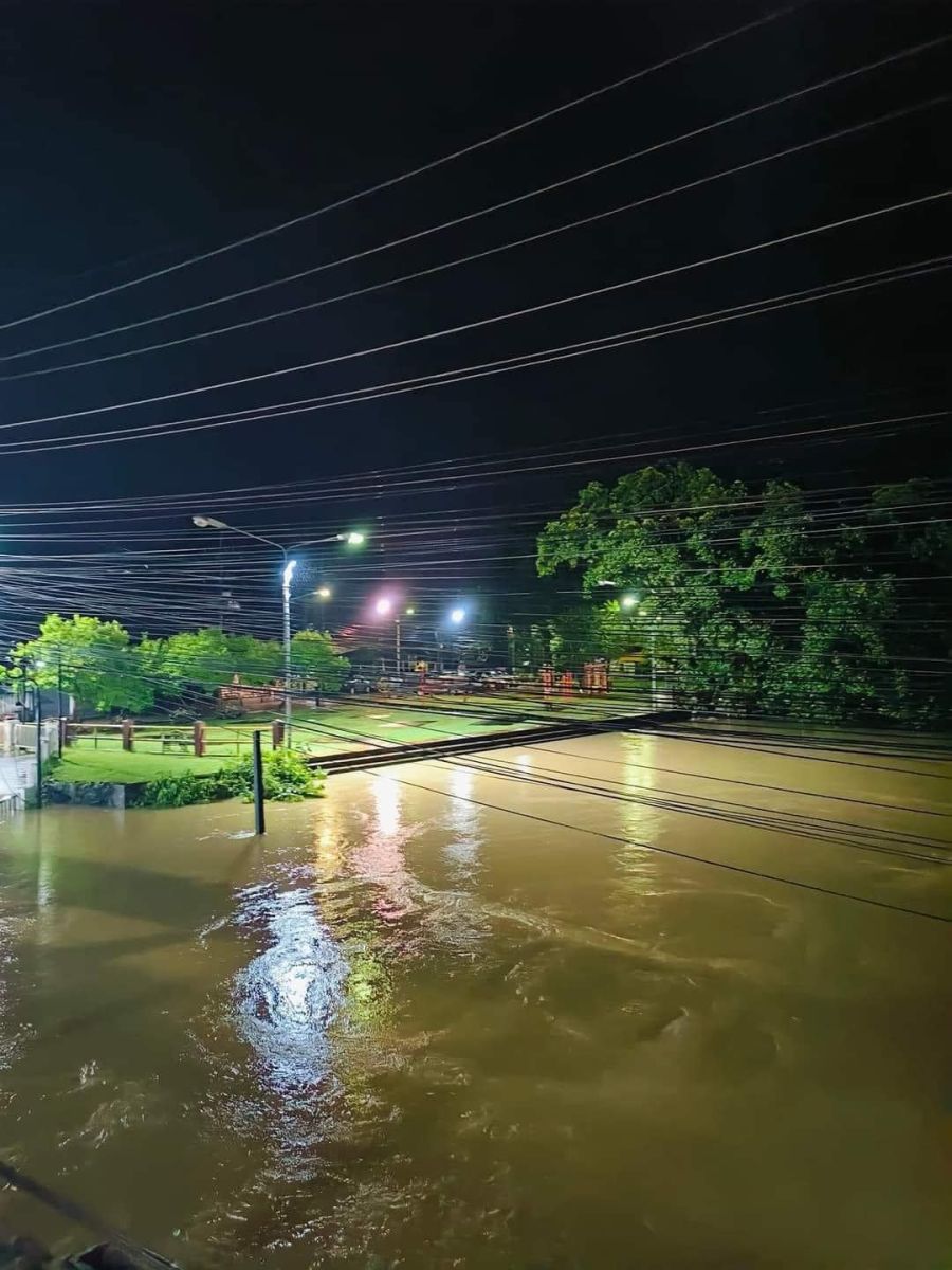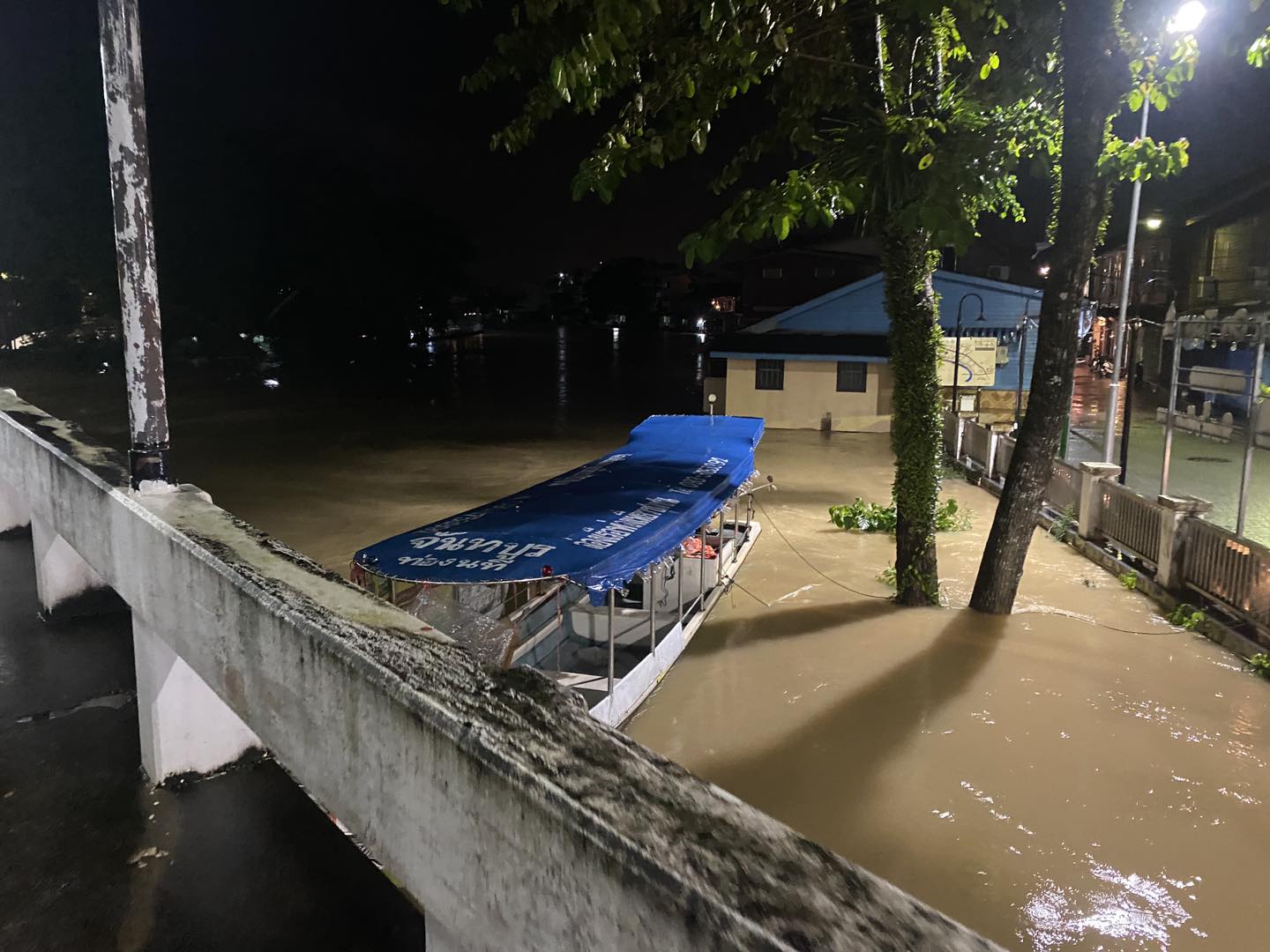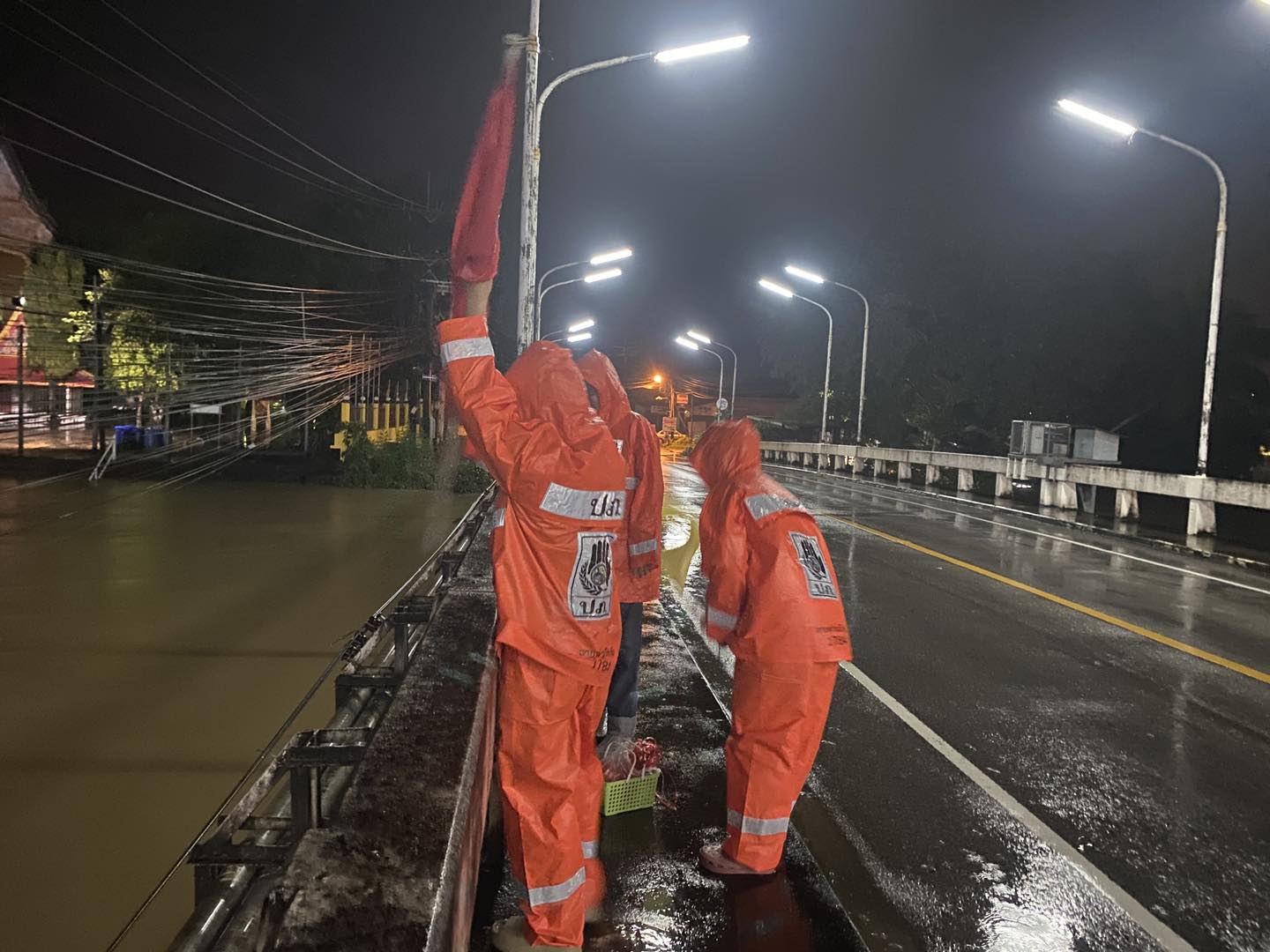 ส่วนระดับน้ำที่บริเวณสะพานดังกล่าว เมื่อเวลาประมาณ 23.40 น. อยู่ที่ 3 เมตร 32 เซนติเมตร หากระดับน้ำสูงกว่า 4 เมตร ขึ้นไปจะเริ่มเข้าท่วมถนนภายในชุมชน