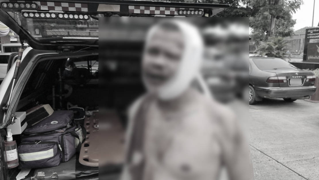 พ่อค้ากล้วยแขก วิ่งหนีตายขึ้นโรงพักแจ้งความ หลังถูกพวกหลานเมียรุมฟันหัว จ.นนทบุรี
