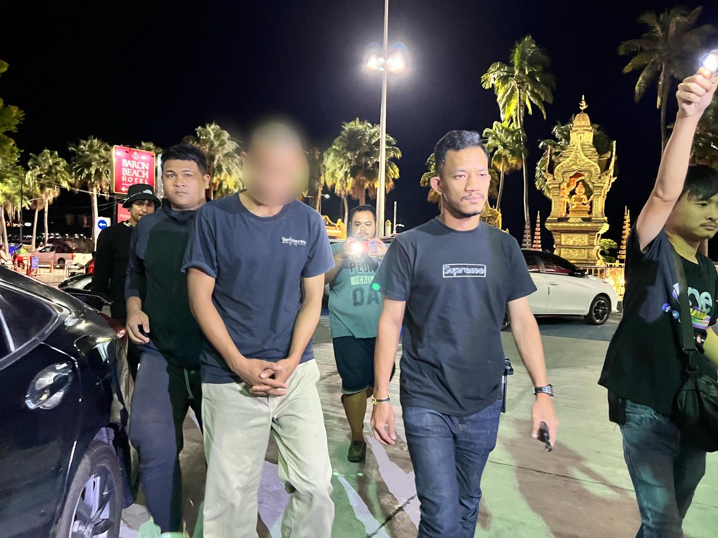 โดยเจ้าหน้าที่ตำรวจชุดสืบสวน สภ.เมืองพัทยา เปืดเผยว่า หลังทราบเรื่องก็ไม่ได้นิ่งนอนใจ นำกำลังลงพื้นหาเบาะแสผู้ก่อเหตุทันที เพราะนอกจากที่มีผู้เสียหายได้รับบาดเจ็บแล้ว ทางเจ้าหน้าที่ตำรวจยังได้รับความเสียหาย จากการถูกกล่าวอ้างถึงจากผู้ก่อเหตุด้วย ซึ่งสามารถแกะรอยตามไปควบคุมตัวได้ที่ จังหวัดชัยภูมิ ซึ่งขณะที่เจ้าตัวเห็นเจ้าหน้าที่ตำรวจ ก็รีบลุกวิ่งหนีเข้าไปในป่าอ้อย แต่สุดท้ายไปไม่รอดก็ต้องยอมจำนนแต่โดยดี ส่วนสาเหตุที่เกิดความล่าช้านั้น ในการจับกุมนั้น เนื่องจากในวันที่เกิดเจ้าหน้าที่ตำรวจ เชิญทั้งสองฝ่ายมาโรงพักแล้ว แต่ด้วยความเป็นเพื่อน ทั้งคู่ ตกลงไม่แจ้งความดำเนินคดี และได้ทำการเปรียบเทียบปรับทะเลาะวิวาทไป จนกระทั่งคนเจ็บเข้าร้องเรียน เจ้าหน้าที่จึงติดตามไปจับกุมตัวดังกล่าว