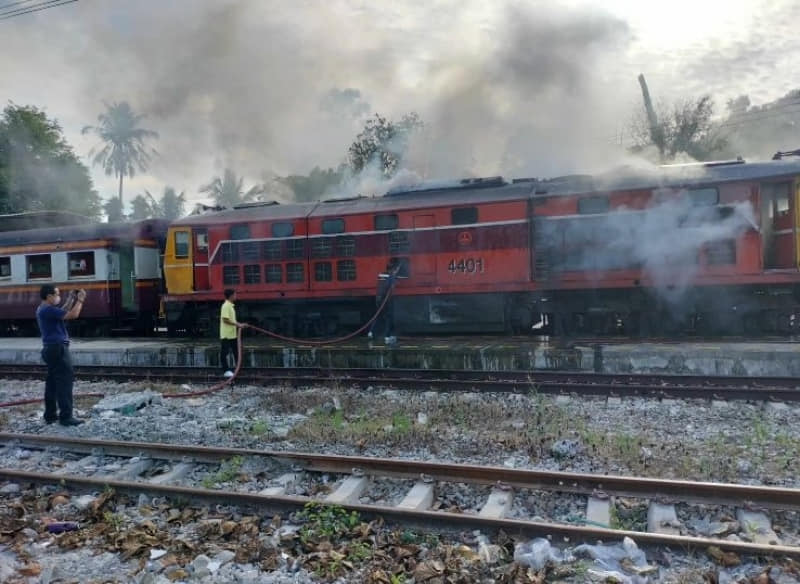ไฟไหม้หัวรถจักรรถไฟ ผู้โดยสาร 200 คนต้องวิ่งหนีเอาชีวิตรอด จ.สงขลา