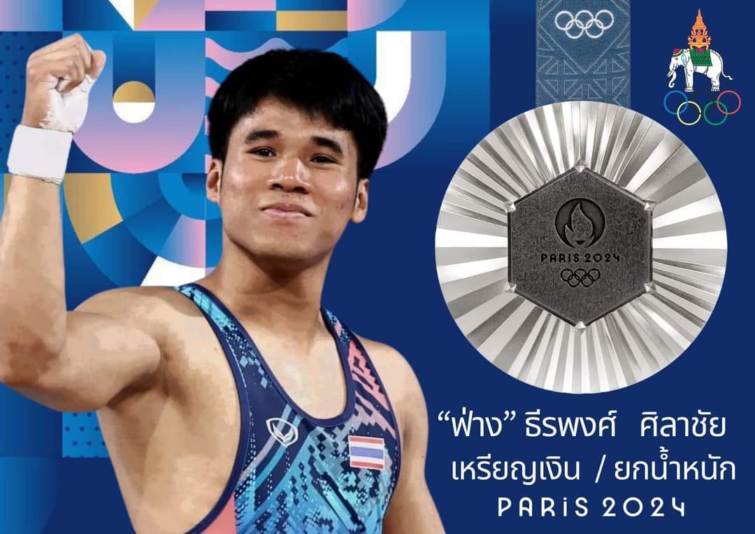 วันที่ 7 สิงหาคม 2567 ทัพนักกีฬาไทยทำผลงานได้ดี คว้าเพิ่ม 3 เหรียญ ทำให้ขึ้นอันดับ 31 ตารางเหรียญโอลิมปิก ไล่ตั้งแต่ ช่วงหัวค่ำ "ฟ่าง" ธีรพงศ์ ศิลาชัย นักยกน้ำหนักชาย รุ่น 61 กก. ที่สามารถคว้าเหรียญเงินมาครองได้สำเร็จ
