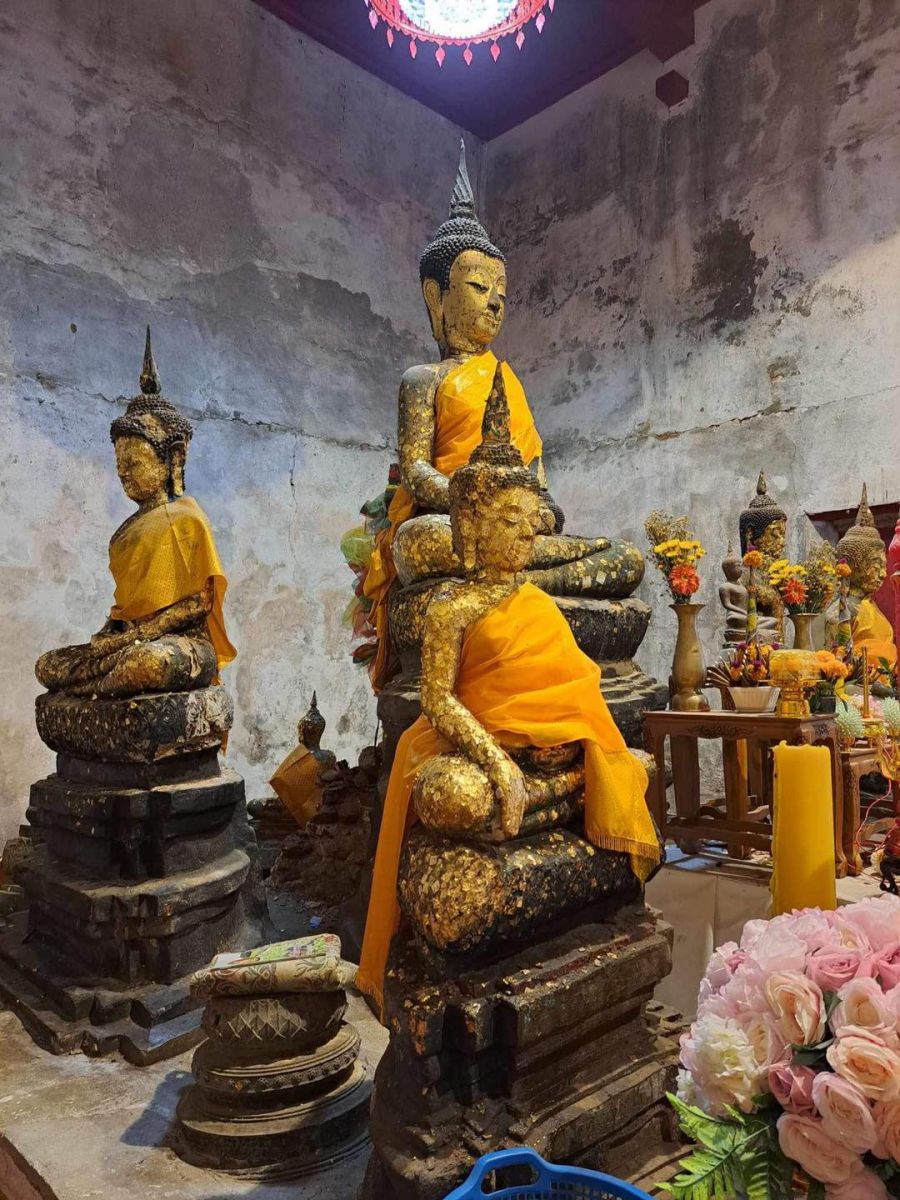 สำหรับพระพุทธรูปที่อยู่รอบพระประธานในโบสถ์ (วิหาร) แห่งนี้ ล้วนแต่เป็นพระพุทธรูปเก่าแก่ที่อยู่คู่กับโบสถ์มานานกว่า 300 ปีแล้ว ส่วนใหญ่จึงมีรอยแตกร้าว เพราะหากเทียบกับอายุของโบสถ์เก่าหลังนี้ก็มีมาตั้งแต่ พ.ศ.2222 จึงเกิดความชำรุดทรุดโทรมไปตามกาลเวลา
