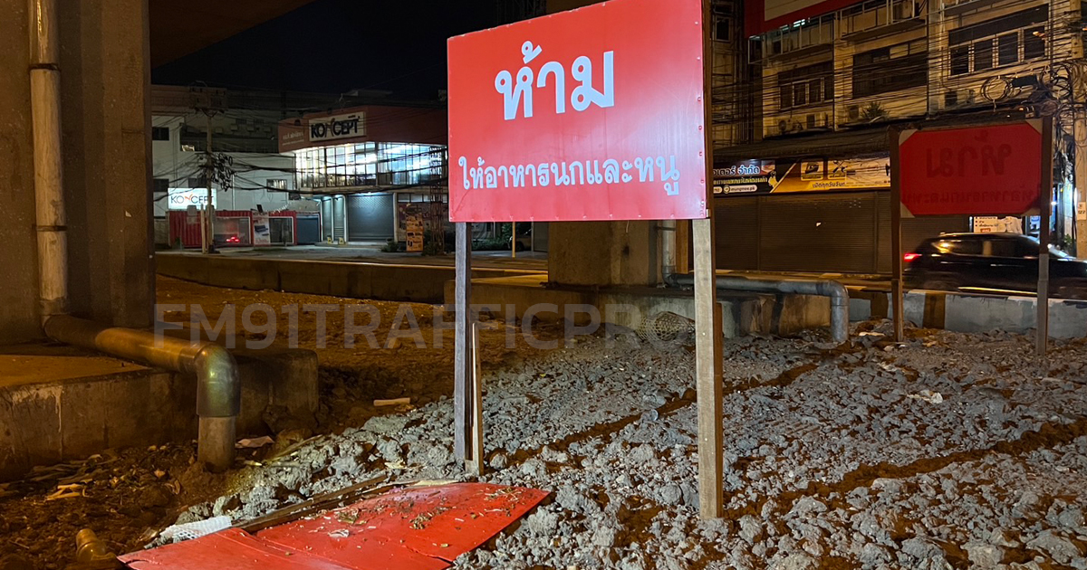 ขณะเดียวกันยังพบป้ายสีแดงเขียนข้อความว่า ห้ามให้อาหารนกและหนู ติดตั้งไว้ซึ่งคาดว่าเจ้าหน้าที่น่าจะมีข้อมูลก่อนหน้าแล้วว่ามีบุคคลนำอาหารมาให้นกและหนูเป็นประจำ จากการสอบถามเด็กชายคนหนึ่งที่รู้จักกับชายคนดังกล่าวให้ข้อมูลว่าแกเอาเศษผักมาจากตลาดปากเกร็ดโดยผักพวกนี้เป็นเศษผักที่เขาทิ้งแล้วแกก็จะเอามาให้หนูทุกวัน แกเป็นใบ้หูตึง ซึ่งตนเคยบอกแกแล้วว่ามีเจ้าหน้าที่นำป้ายมาติดห้ามให้อาหารโดยมีการพูดคุยด้วยภาษามือ แต่เหมือนแกจะบอกว่าก็จะนำมาให้แบบนี้ทุกวัน