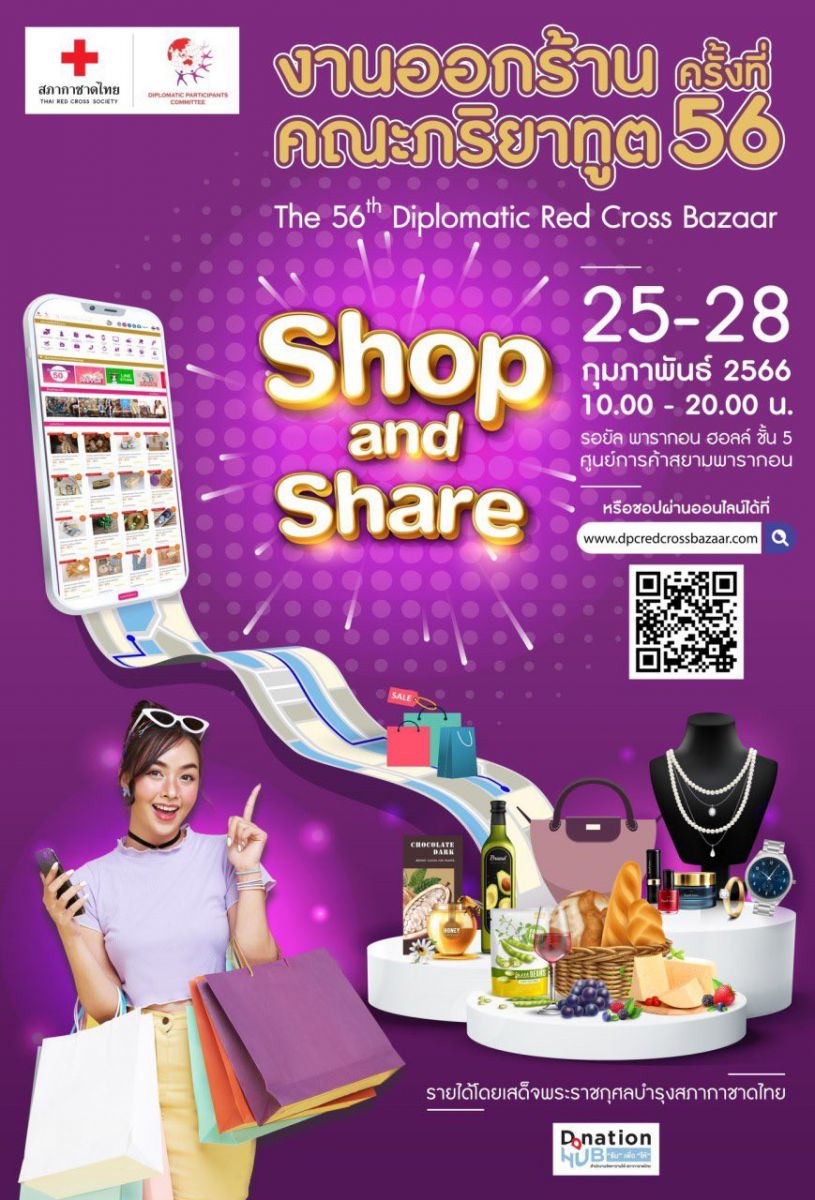 ประชาสัมพันธ์ผู้ใช้เส้นทาง ระหว่างวันที่ 25-28 ก.พ.2566 มีการจัดงาน “งานออกร้านคณะภริยาทูตครั้งที่ 56” ภายใต้แนวคิด “Shop and Share” เวลา 10.00-20.00 น. ในรูปแบบ Hybrid Event ณ รอยัล พารากอน ฮอลล์ ชั้น 5
