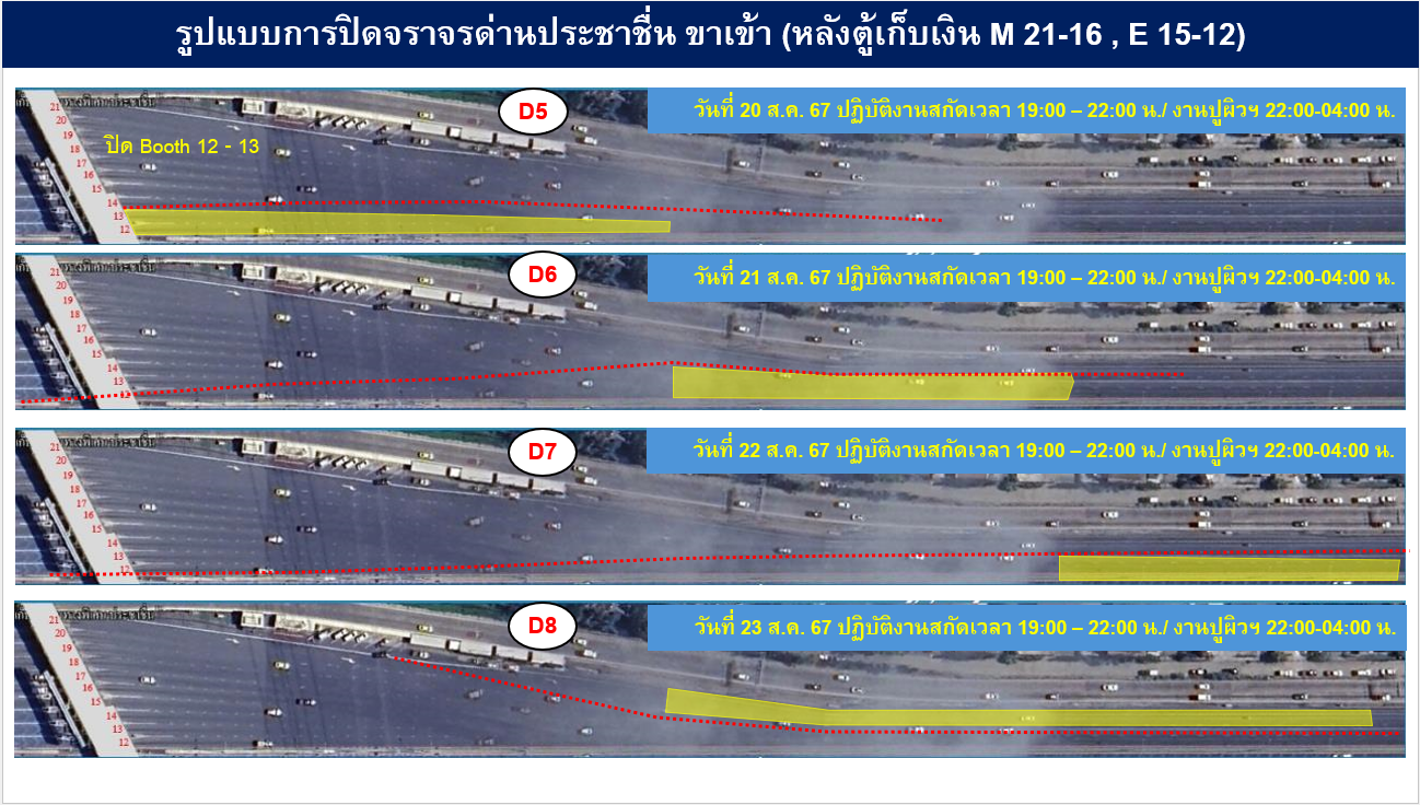 • วันที่ 20 ส.ค. 67 เบี่ยงการจราจร ตู้เก็บค่าผ่านทางที่ 12-13