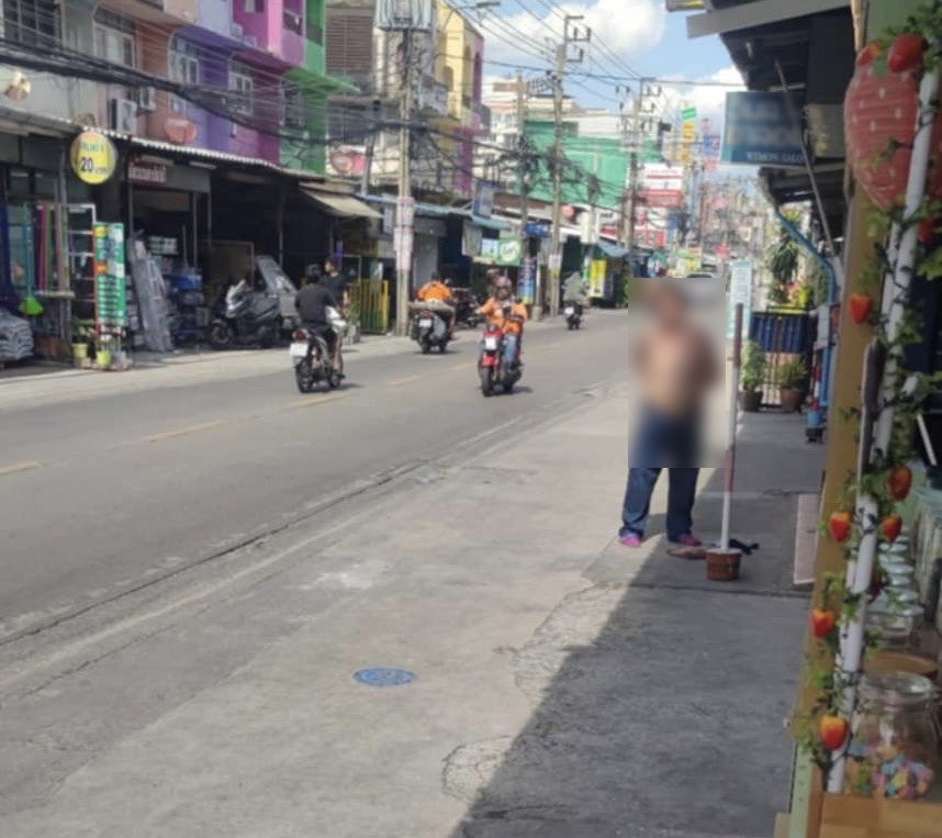 คุณป้าป่วยคลั่ง เรียกแท็กซี่ไม่จอดรับ ประชดแก้ผ้าเดินกลางถนน จ.นนทบุรี