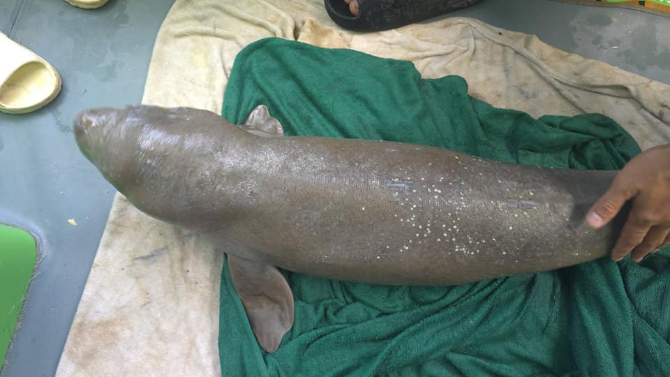 จากการตรวจสอบพบว่าเป็นลูกพะยูน เพศผู้ อายุประมาณ 1-2 เดือน ความยาว 102 ซม. น้ำหนัก 13.8 กก. ลูกพะยูนสภาพอ่อนแรงและตาจมลึกแสดงถึงภาวะขาดน้ำ แต่ยังสามารถยกหัวขึ้นหายใจได้ พบรอยบาดแผลบริเวณส่วนจมูกและหัวเล็กน้อย ร่างกายค่อนข้างผอม บริเวณตาซ้ายขุ่น เสียงปอดมีความชื้นเล็กน้อย ลำไส้มีการบีบตัว และพะยูนยังมีความอยากกินอาหาร ทีมเจ้าหน้าที่ให้การดูแลตลอด 24 ชั่วโมง โดยมีการป้อนนมทดแทนและน้ำทุกๆ 2 ชั่วโมง เพื่อชดเชยภาวะการขาดน้ำ มีการใช้นมผงเด็กเป็นนมทดแทนให้กับพะยูน และทางสัตวแพทย์จะวางแผนในการตรวจสุขภาพอย่างละเอียดต่อไป