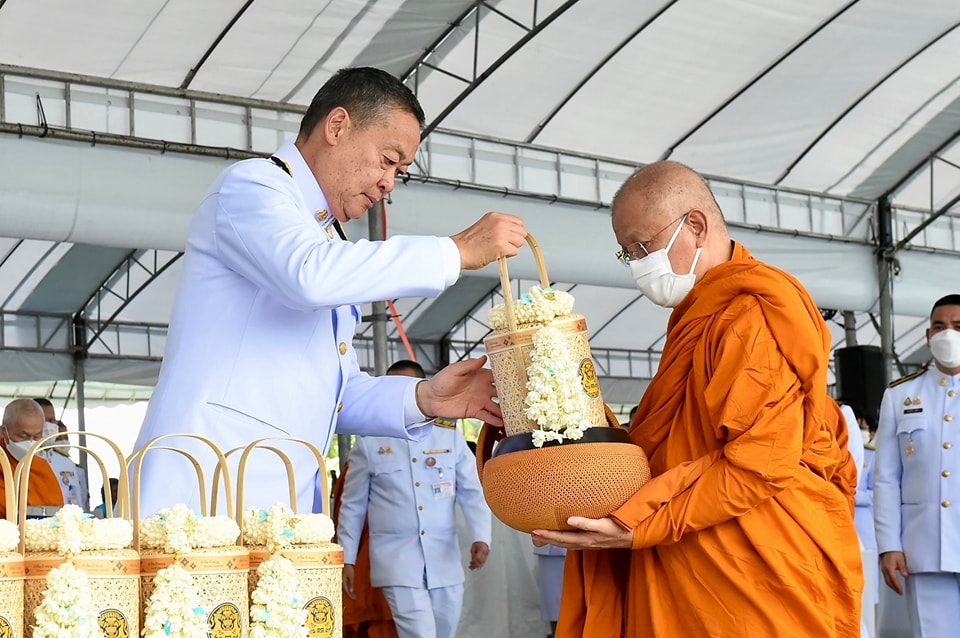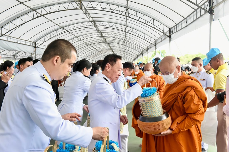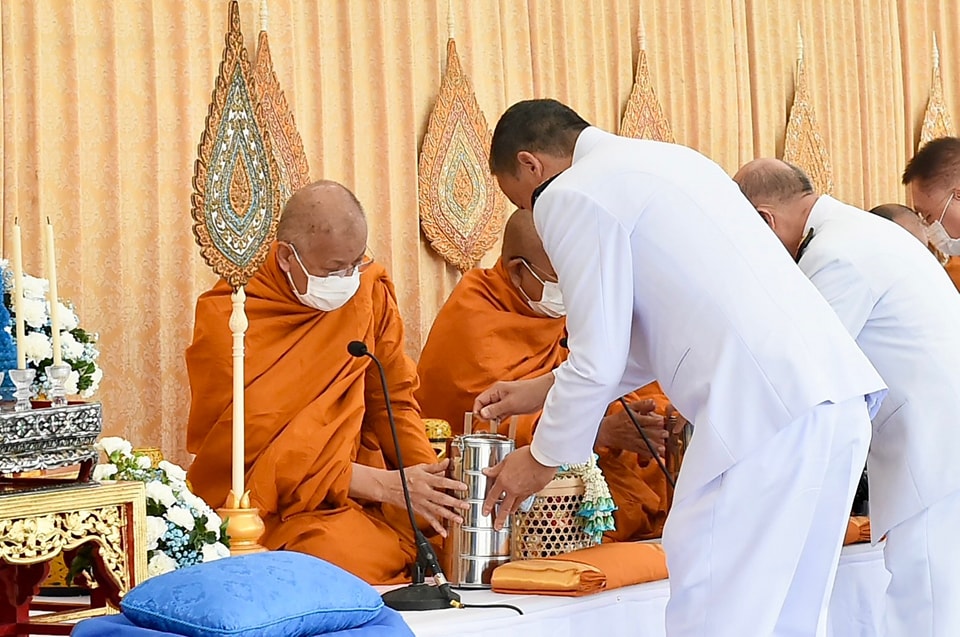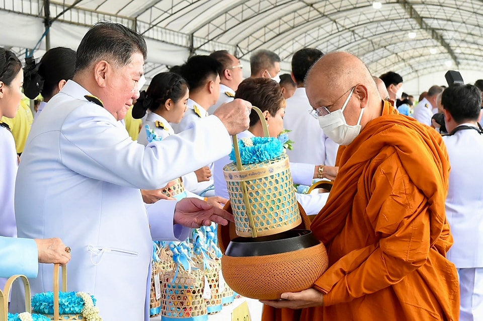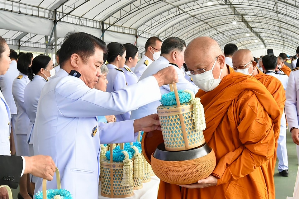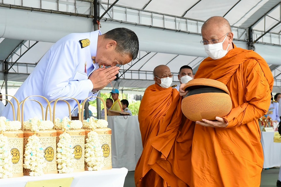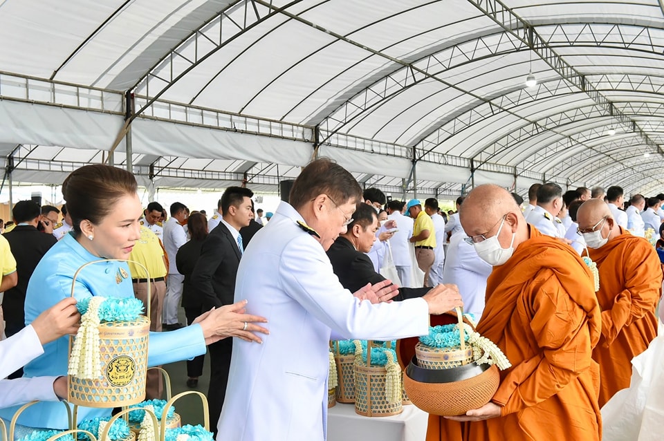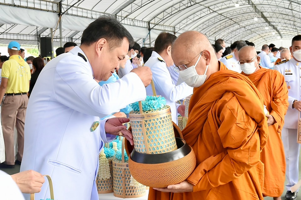 ต่อจากนั้น นายกรัฐมนตรีและภริยา นำผู้เข้าร่วมพิธีร่วมตักบาตรพระสงฆ์ จำนวน 193 รูป เสร็จพิธี