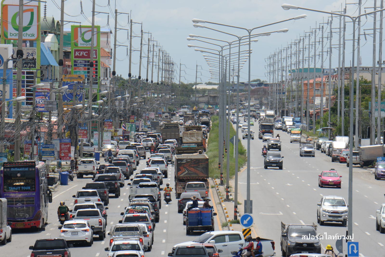 ติดหนักมาก! ถนนสุขุมวิท ขาออก ไปกลับรถ ใต้สะพานข้ามคลองด่าน ท้ายแถวสะสมอยู่ที่หน้าเทศบาลตำบลคลองด่าน มีปัญหาจาก วันนี้ มีประชาชนจำนวนมาก หลั่งไหลมาทำบุญ ที่วัดสร่างโศกกันอย่างเนืองแน่น #รายงานจราจร #รถติด #คลองด่าน #FM91