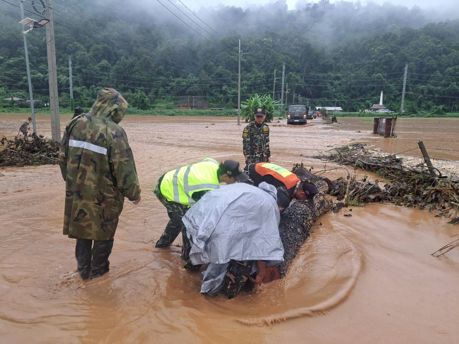 วันนี้ (12 ส.ค. 2567) นายพรเทพ เจริญสืบสกุล ผู้อำนวยการสำนักบริหารพื้นที่อนุรักษ์ที่ 16 สาขาแม่สะเรียง เปิดเผยว่า นายนิกร แก้วโมรา หัวหน้าเขตรักษาพันธุ์สัตว์ป่าลุ่มน้ำปาย รายงานว่า เมื่อคืนวันที่ 11 สิงหาคม ถึงเช้าวันที่ 12 สิงหาคม 2567 มีฝนตกต่อเนื่อง โดยเฉพาะตำบลสบป่อง อำเภอปางมะผ้า จังหวัดแม่ฮ่องสอน วัดปริมาณน้ำฝนได้สูงสุด บริเวณจุดสกัดโกวิทย์ปัญญาตรง 2 (ดอยเขียว) 148 มม. ทำให้เกิดน้ำป่าไหลหลากเข้าท่วมบ้านเรือนราษฎร บ้านไร่ และบ้านท่าไคร้ หมู่ที่ 3 ตำบลสบป่อง อำเภอปางมะผ้า และเส้นทางระหว่างทางหลวงแผ่นดิน 1095 -บ้านไร่ ได้ถูกน้ำท่วม ราษฎรไม่สามารถเดินทางสัญจร นายอำเภอปางมะผ้า จึงได้ประสานงานทุกหน่วยงานเข้าให้การช่วยเหลือผู้ประสบเหตุ