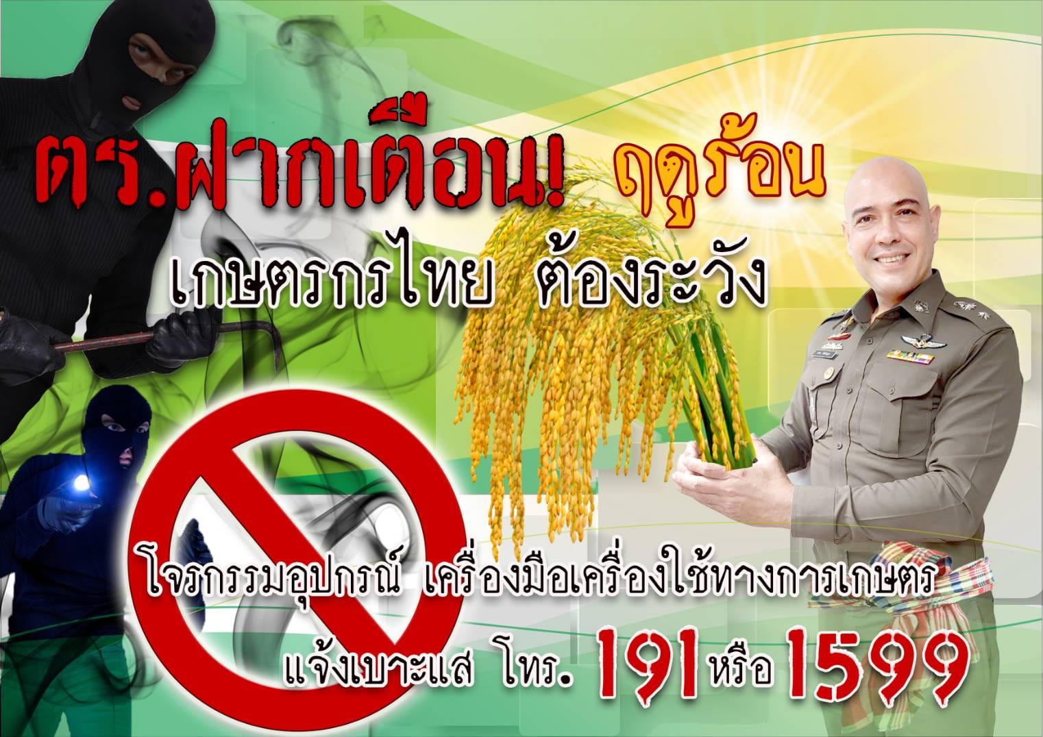 วันนี้ (25 ก.พ.66) พ.ต.ท. ธ เทพ ไชยชาญบุตร รองโฆษก สำนักงานตำรวจแห่งชาติ เตือนภัย เกษตรกรใช้ความระมัดระวังป้องกันเครื่องมือและอุปกรณ์เกษตรถูกโจรกรรม โดยระบุว่า จากข้อมูลสถิติอาชญากรรมทุกปีที่ผ่านมา เมื่อเข้าสู่ช่วงฤดูร้อนที่มีสภาวะแห้งแล้ง เกษตรกรมีความจำเป็นต้องนำเครื่องมือการเกษตร เช่น เครื่องสูบน้ำ หรือรถไถขนาดเล็กพ่วงเครื่องสูบน้ำไปใช้สูบน้ำเข้าแปลงเกษตร และมักถูกโจรกรรมเป็นที่เสียหายเดือดร้อน