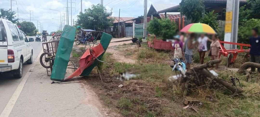 รถกระบะ ชนกับรถจักรยานยนต์พ่วงข้าง มีผู้เสียชีวิตร่างกระเด็นตกลงพงหญ้าข้างทาง จ.ชัยภูมิ