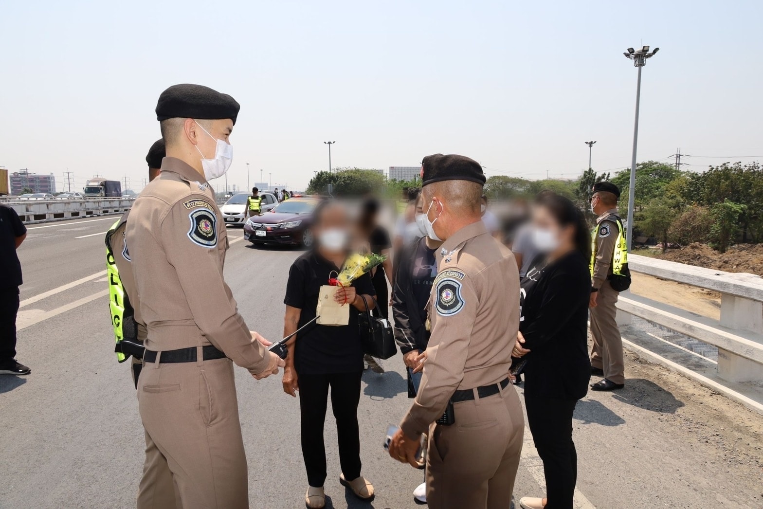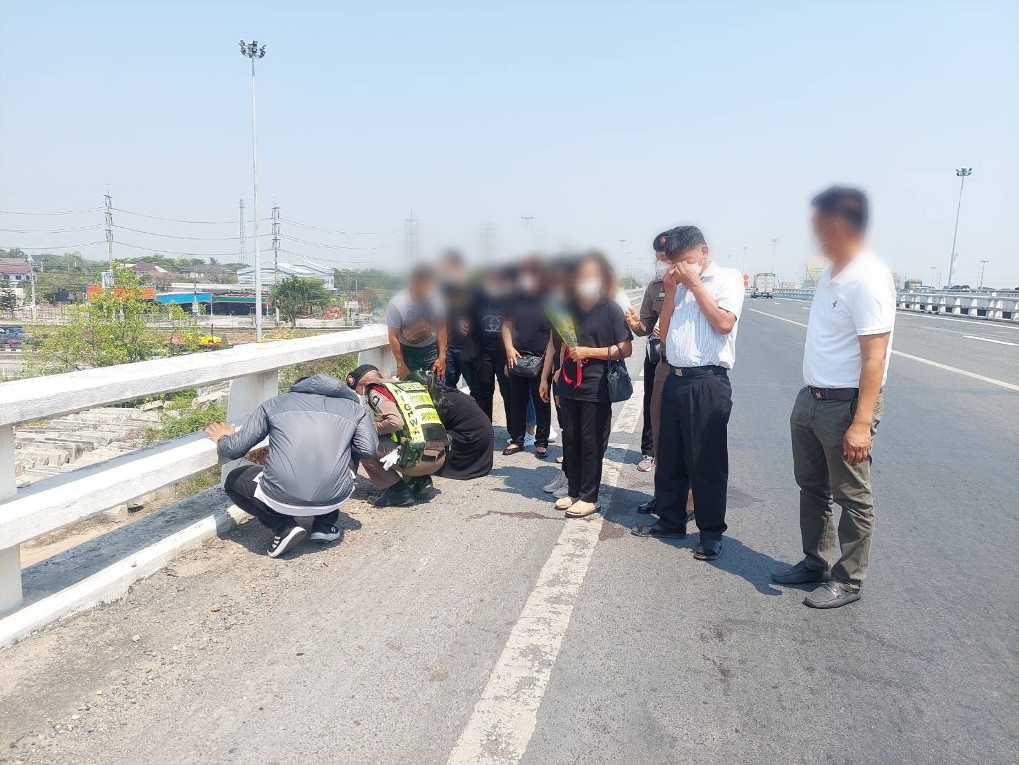 วันที่ 25 ก.พ.2566 ครอบครัว และเพื่อนตำรวจ สถานีตำรวจทางหลวง 2 กก.8 บก.ทล. ได้นิมนต์พระ มาทำพิธีเชิญดวงวิณญาณผู้เสียชีวิต บริเวณจุดเกิดเหตุบนต่างระดับลำลูกกา