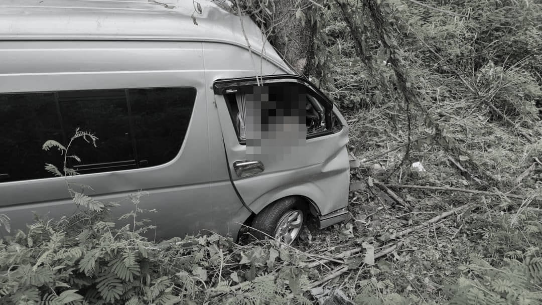 คุณลุงวัย 65 ปี ขับรถตู้เสียหลักพุ่งชนต้นไม้ริมถนนทางหลวงหมายเลข 1 เสียชีวิตคาซากรถ จ.ลำปาง