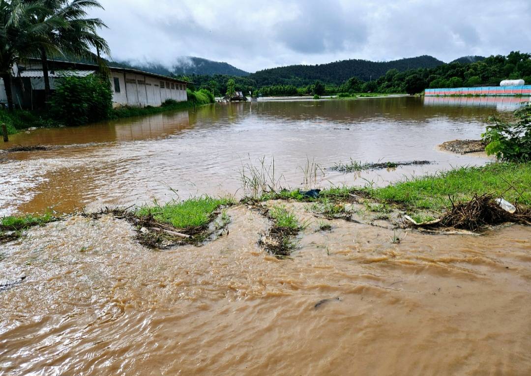 6) บ้านห้วยส้านใหม่ หมู่ที่ 7 ตำบลห้วยผา ระดับน้ำของแม่น้ำของ ได้เพิ่มสูงขึ้นอย่างต่อเนื่อง เข้าท่วมพื้นที่การเกษตร (นาข้าว) ถนนคอนกรีตเข้าหมู่บ้านถูกน้ำกัดเซาะได้รับความเสียหาย