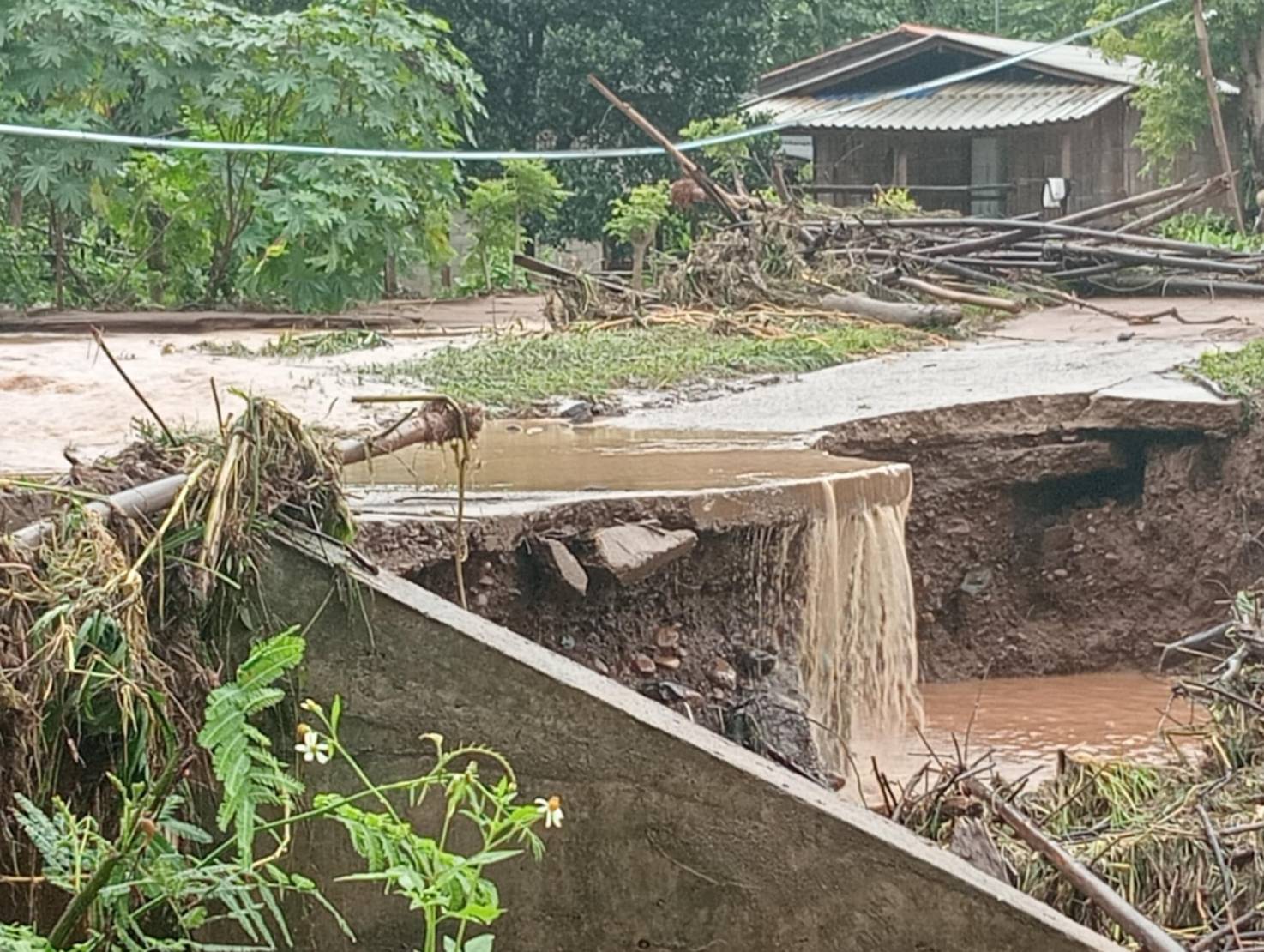 3) บ้านห้วยโป่งกาน หมู่ที่ 6 ตำบลผาบ่อง น้ำป่าไหลหลากเข้ากัดเซาะทำให้ถนนภายในหมู่บ้าน ฝายและพื้นที่การเกษตร (นาข้าว) ได้รับความเสียหาย ทำให้รถยนต์ทุกชนิดไม่สามารถสัญจรได้