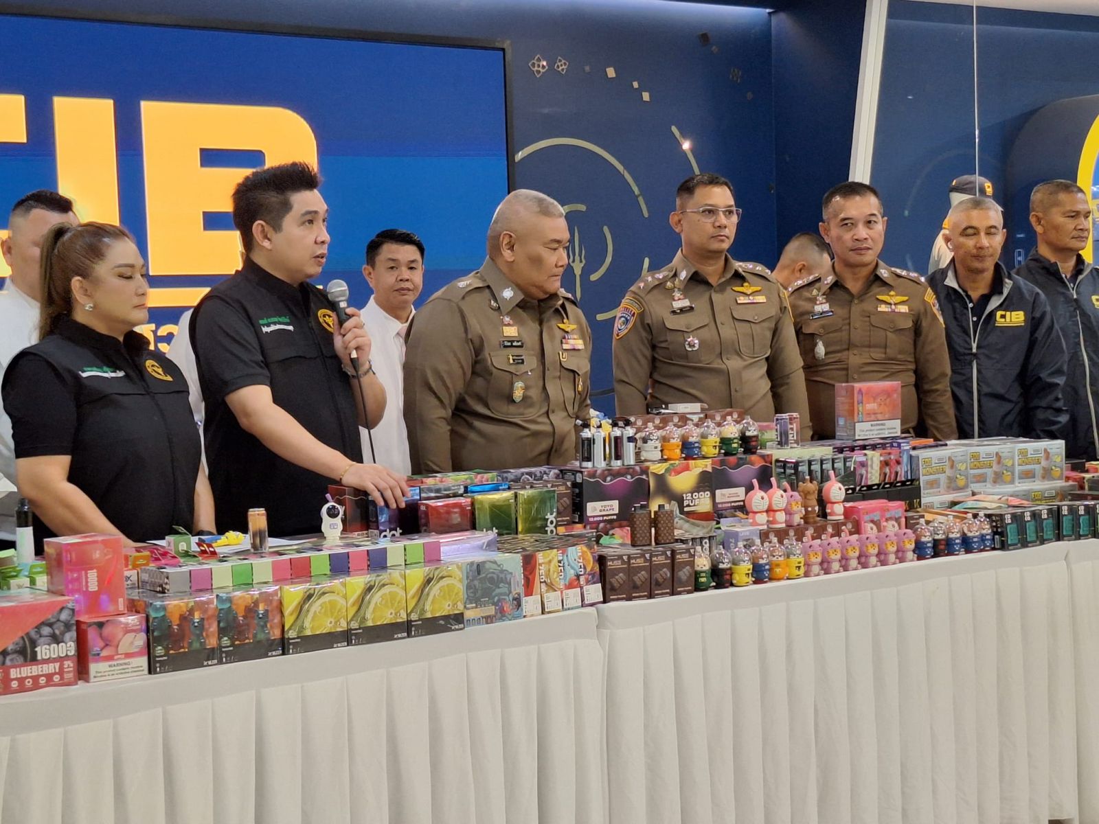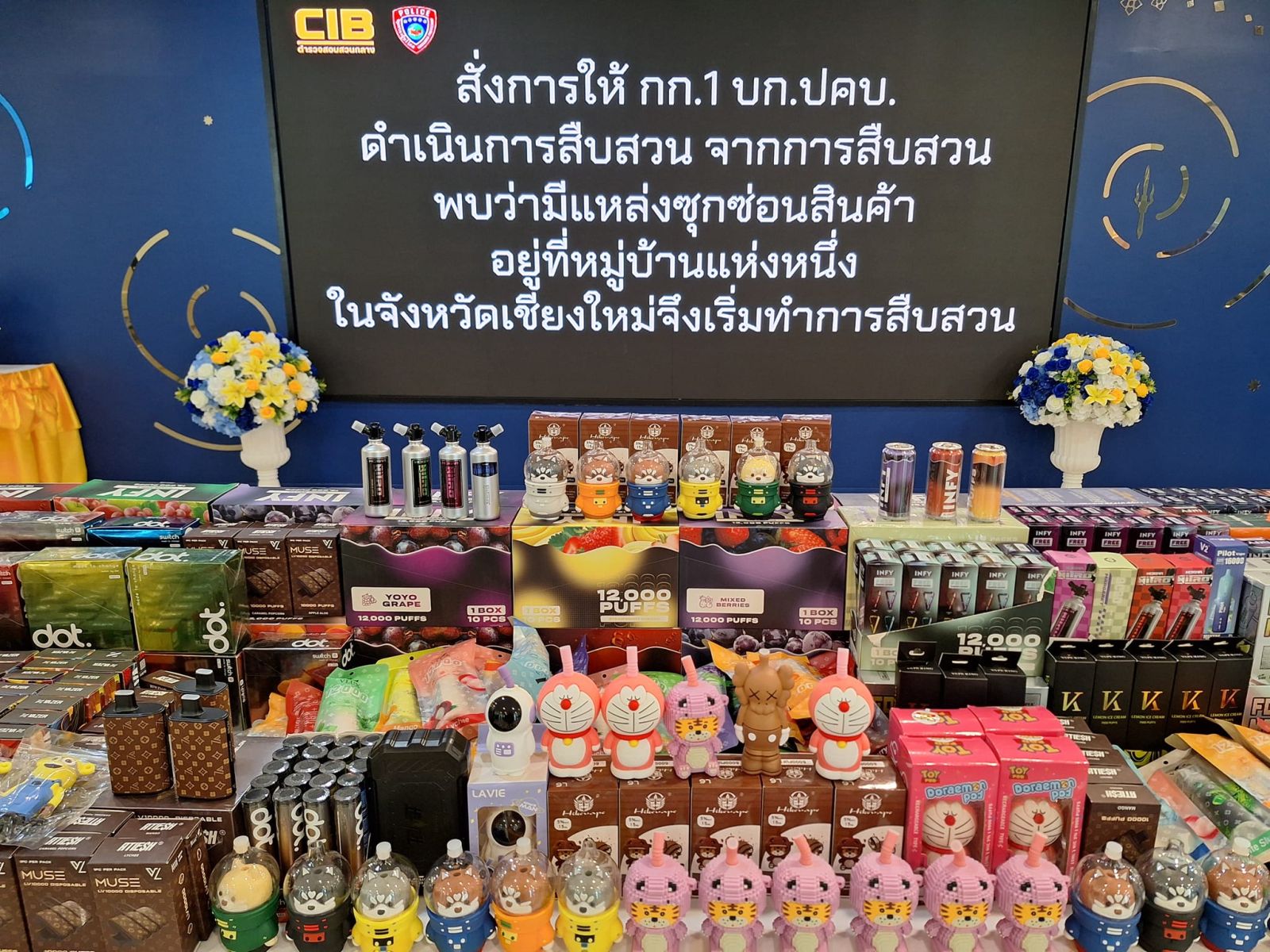 ตำรวจกองบังคับการปราบปรามการกระทำความผิดเกี่ยวกับการคุ้มครองผู้บริโภค แถลงผลปฏิบัติการผู้ลักลอบจำหน่ายบุหรี่ไฟฟ้าช่องทางออนไลน์รายใหญ่ในพื้นที่ภาคเหนือ ยึดของกลาง 31,790 ชิ้น รวมมูลค่าประมาณ 10 ล้านบาท