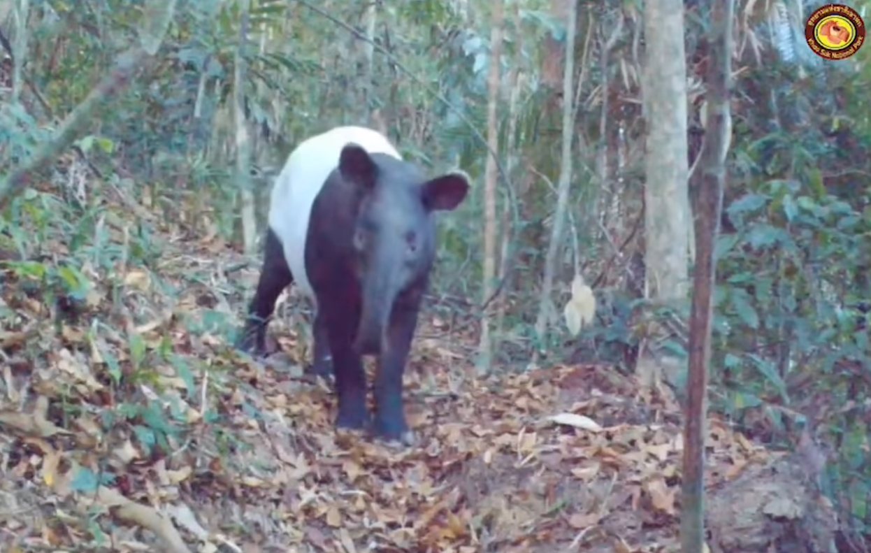 ภาพจากกล้องดักถ่ายสัตว์ป่าโดยการติดตั้งของเจ้าหน้าที่สายตรวจฯ อุทยานแห่งชาติเขาสกบันทึกภาพสมเสร็จได้บริเวณใกล้แหล่งน้ำ และแหล่งอาหารของสัตว์ป่าในพื้นที่