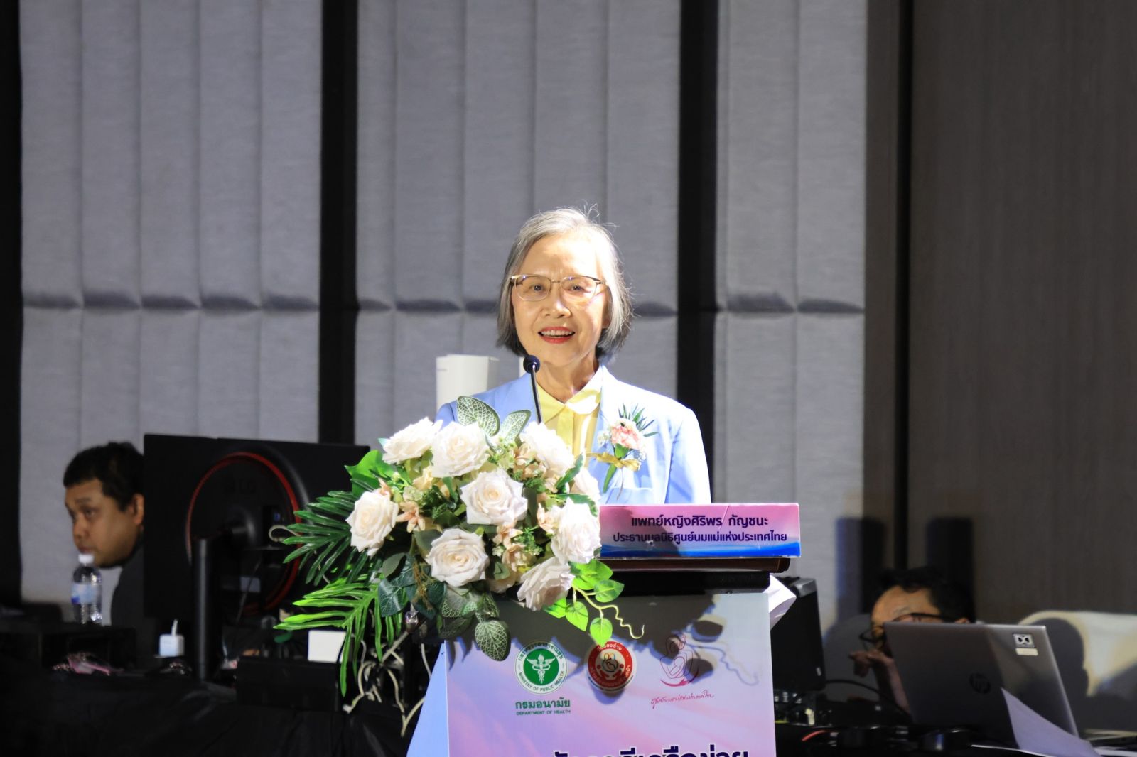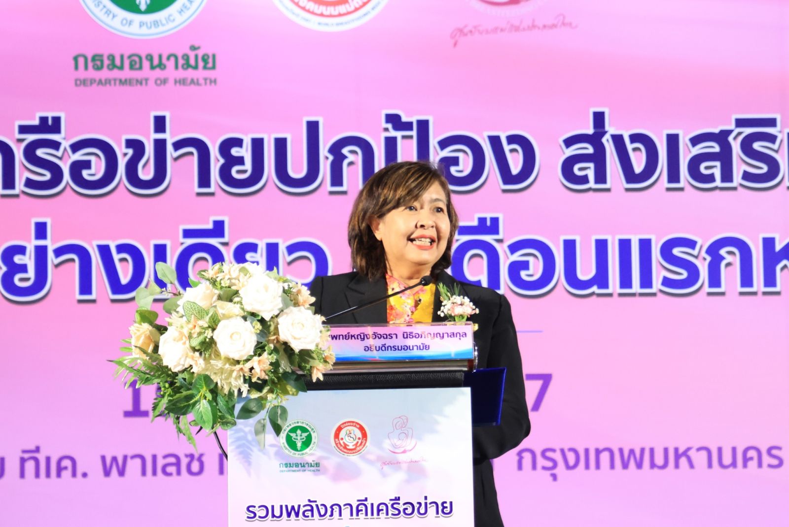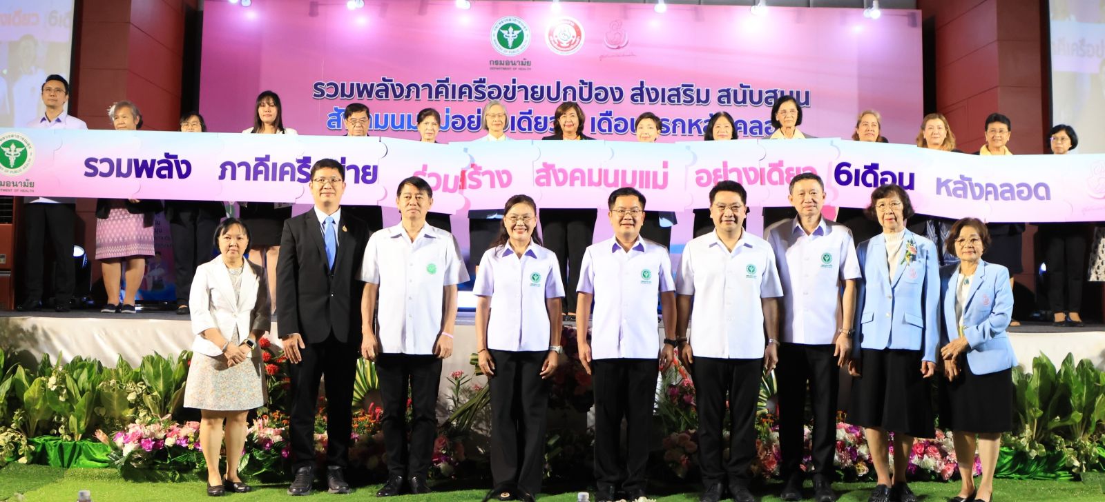 วันที่ 19 สิงหาคม 2567 แพทย์หญิงอัจฉรา นิธิอภิญญาสกุล อธิบดีกรมอนามัย เป็นประธานในพิธีเปิดงาน KICK OFF รวมพลังภาคีเครือข่ายปกป้อง ส่งเสริม สนับสนุนสังคมนมแม่อย่างเดียว 6 เดือนแรกหลังคลอด พร้อมด้วย แพทย์หญิงศิริพร กัญชนะ ประธานมูลนิธิศูนย์นมแม่แห่งประเทศไทย นายแพทย์เอกชัย เพียรศรีวัชรา รองอธิบดีกรมอนามัย แพทย์หญิงนงนุช ภัทรอนันตนพ รองอธิบดีกมอนามัย นายแพทย์ปกรณ์ ตุงคะเสรีรักษ์ ผู้ช่วยอธิบดีกรมอนามัย และผู้อำนวยการสำนักส่งเสริมสุขภาพ ผู้บริหารจากกรมอนามัย ผู้บริหารจากมูลนิธิศูนย์นมแม่แห่งประเทศไทย และภาคีเครือข่ายร่วมงาน ณ โรงแรมทีเค. พาเลซ แอนด์ คอนเวนชั่น แจ้งวัฒนะ กรุงเทพมหานคร