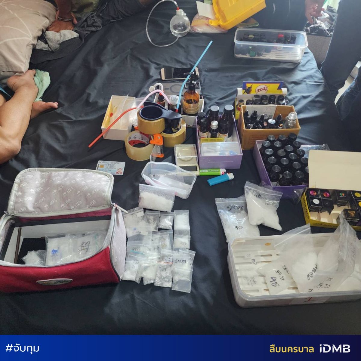 - ถุงพลาสติกใสแบบกดปิด ดึงเปิด สำหรับบรรจุยาเสพติดเพื่อจำหน่าย และพยานหลักฐานอื่นๆ อีกหลายรายการ