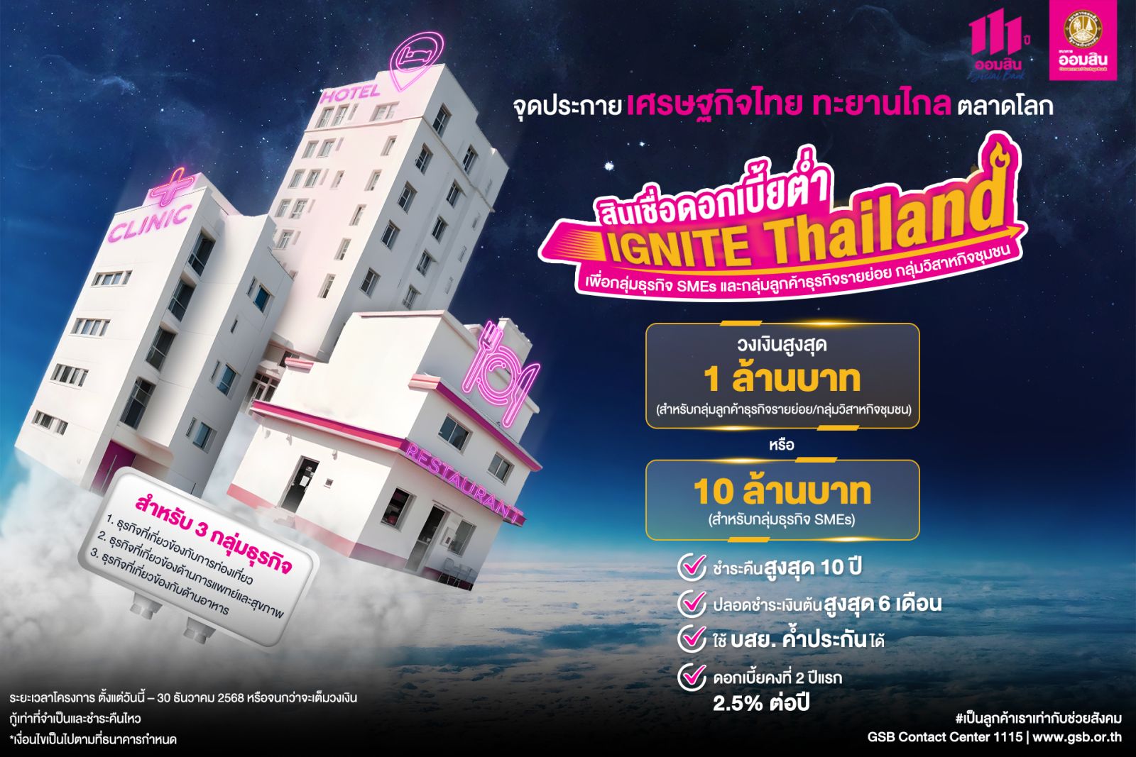 ธนาคารออมสินร่วมขับเคลื่อนเศรษฐกิจไทยให้ทะยานไกลสู่ตลาดโลก ด้วยการออก “สินเชื่อดอกเบี้ยต่ำ (Soft Loan) IGNITE Thailand” สำหรับกลุ่มธุรกิจ SMEs และกลุ่มลูกค้าธุรกิจรายย่อย หรือ วิสาหกิจชุมชน