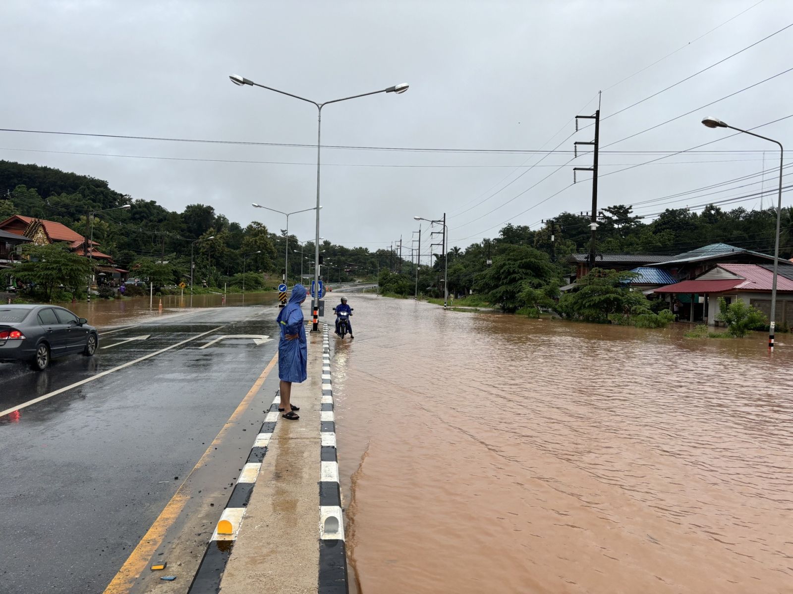 เนื่องจากฝนตกหนักตลอดทั้งคืน ทำให้ระดับน้ำแม่น้ำน่านเพิ่มสูงทำให้น้ำเอ่อล้นผิวทาง ดังนี้