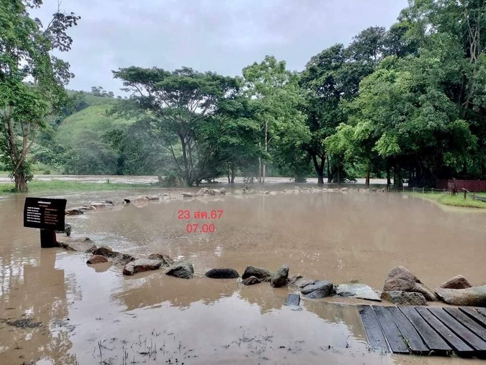 23 สิงหาคม 2567 นายพิทยา สะศรีสังข์ หัวหน้าอุทยานแห่งชาติลำน้ำกก (เตรียมการ) รายงานว่า อุทยานแห่งชาติลำน้ำกก อยู่ในช่วงของการปิดการท่องเที่ยวประจำปี จนถึง 30 กันยายน 2567 และ สถานการณ์ในพื้นที่ยังคงมีฝนตกต่อเนื่อง สลับกับหยุดเป็นช่วง ๆ ท้องฟ้ามืดครึ้ม ที่ผ่านมาในพื้นที่มีฝนตกติดต่อกันมาหลายวัน เจ้าหน้าที่เฝ้าระวังสถานการณ์มาอย่างใกล้ชิด กระทั่งวันนี้น้ำได้เข้าท่วมบ่อน้ำพุ และระดับน้ำได้เพิ่มสูงขึ้นเรื่อยๆ ทั้งนี้ได้สั่งการให้เจ้าหน้าที่เฝ้าระวังและติดตามสถานการณ์อย่างใกล้ชิดต่อไป
