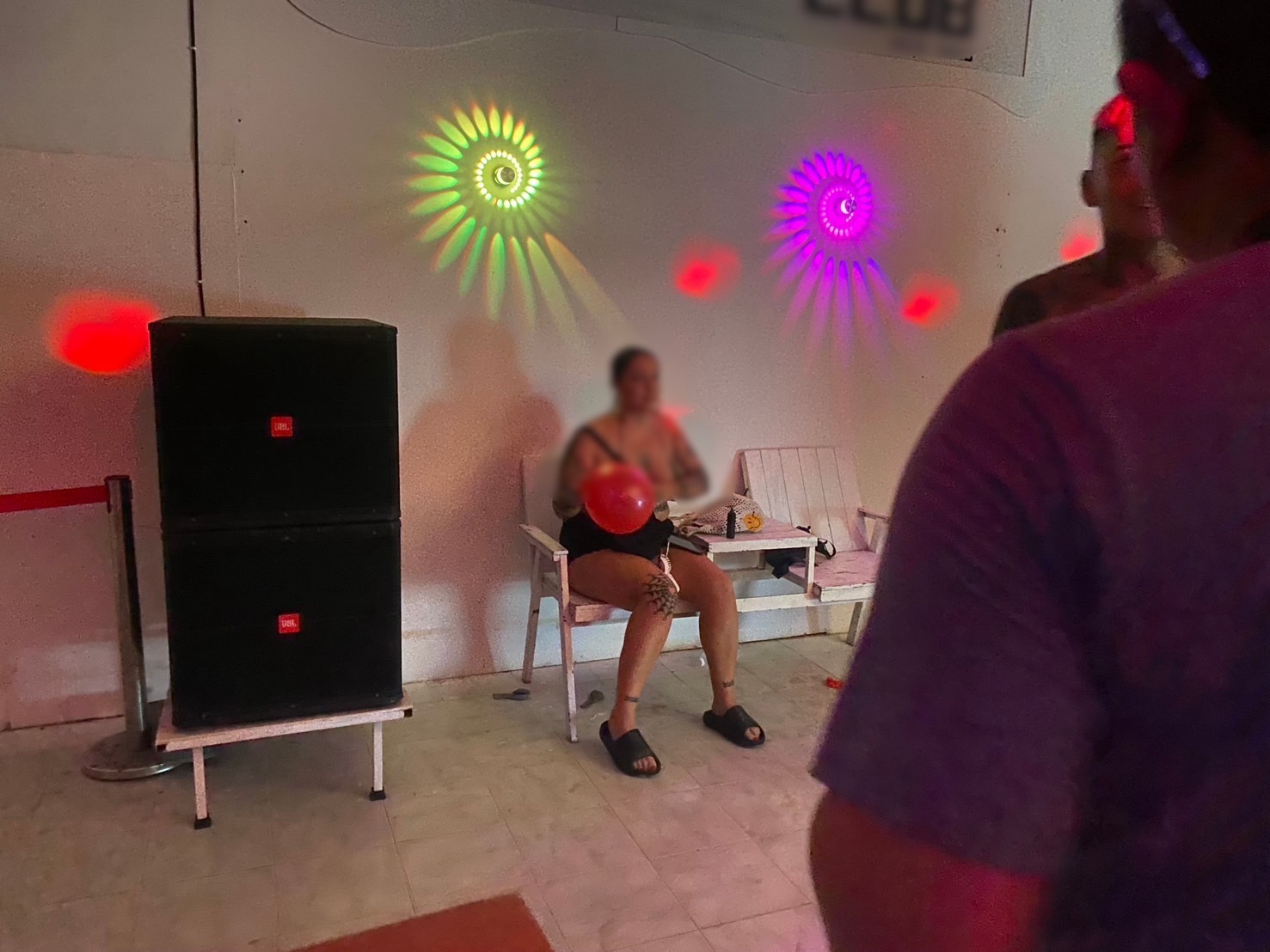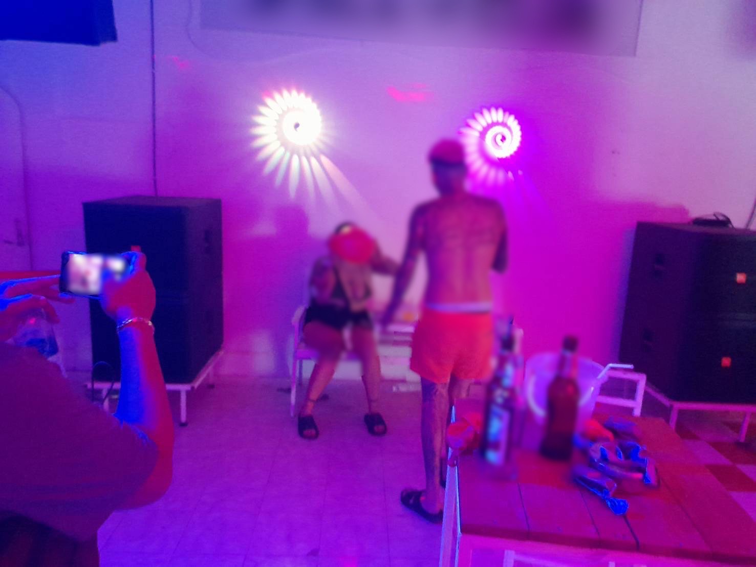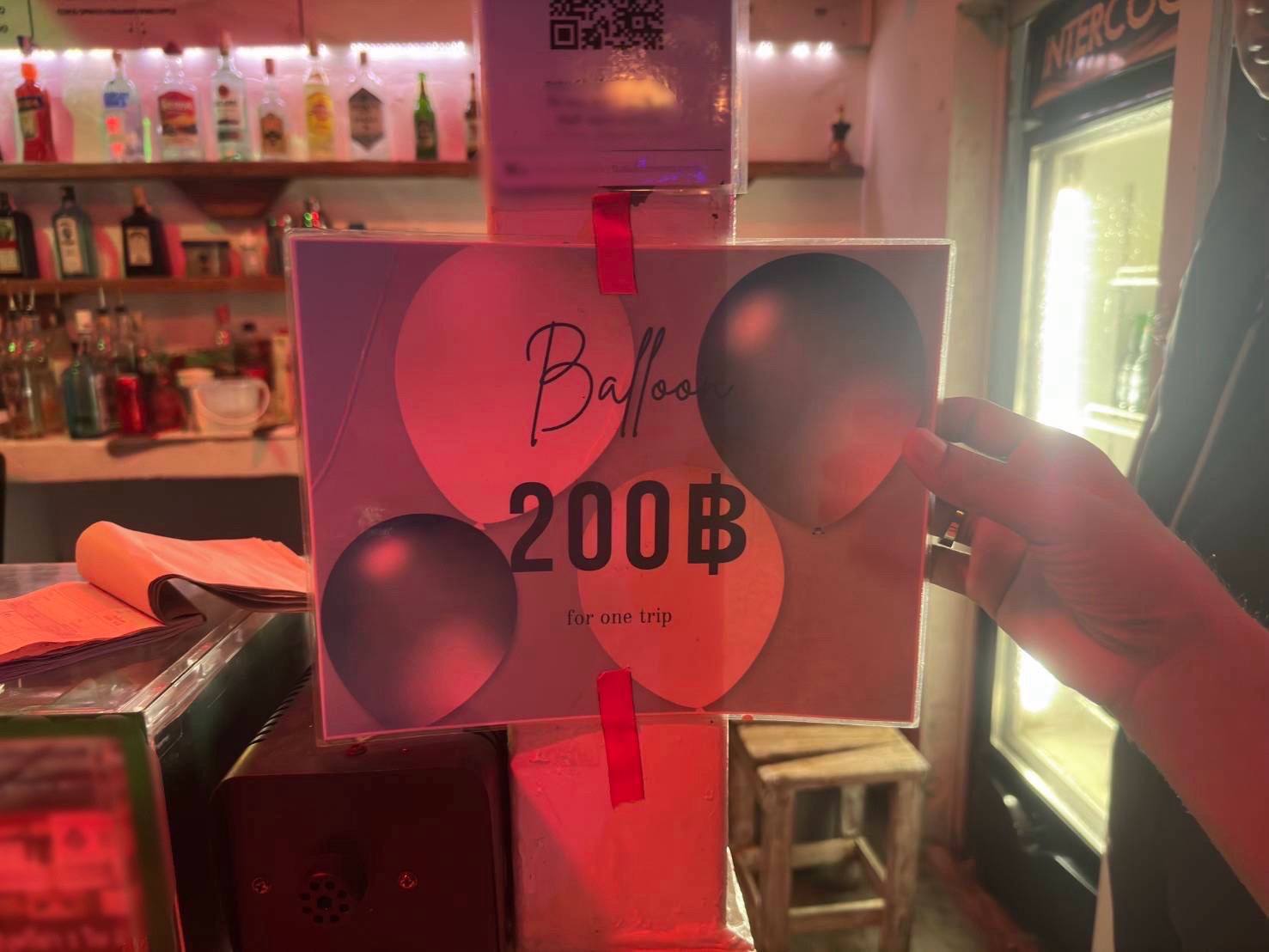 ต่อมาเจ้าหน้าที่ตำรวจสอบสวนกลาง (CIB) ประกอบด้วย เจ้าหน้าที่ตำรวจ กก.5 บก.ปคม., เจ้าหน้าที่ตำรวจ กก.5 บก.ป., เจ้าหน้าที่ตำรวจ ส.รน.3 กก.6 บก.รน. และเจ้าหน้าที่ตำรวจ กก.4 บก.ปคบ. ได้ร่วมกันบูรณาการสนธิกำลังออกตรวจพื้นที่ในงานฟูลมูนปาร์ตี้ หาดริ้น อ.เกาะพะงัน จ.สุราษฎร์ธานี จากการสืบสวนทราบว่าสถานบริการแห่งหนึ่ง ซึ่งเป็นอาคาร 2 ชั้น ลักลอบขายที่บริเวณชั้น 2 อยู่บริเวณชายหาดริ้น อ.เกาะพะงัน สถานที่จัดงานฟูลมูนปาร์ตี้ ทราบว่ายังมีการลักลอบจำหน่ายแก๊สไนตรัสออกไซด์ (แก๊สหัวเราะ) เมื่อเจ้าหน้าที่ขึ้นไปถึงบนร้านชั้น 2 พบเห็นนักท่องเที่ยวกำลังถือลูกโป่ง จึงได้ทำการตรวจสอบพบถังแก๊สสีฟ้า ด้านในบรรจุไนตรัสออกไซด์ (แก๊สหัวเราะ) จำนวน 2 ถัง และลูกโป่งที่ใช้แล้วทิ้งเกลื่อนบนพื้นร้านและบนโต๊ะที่นักท่องเที่ยวได้มาฟูลมูนปาร์ตี้ และพบป้ายโฆษณาจำหน่ายแก๊สไนตรัสออกไซด์ (แก๊สหัวเราะ) จำนวน 2 อัน ป้ายมีข้อความโฆษณา “LAUGHING GAS BALLOON TRY NOT TO LAUGH” และระบุข้อความ “BALLOON 200 B FOR ONE TRIP” วางไว้ใกล้ถังแก๊ส