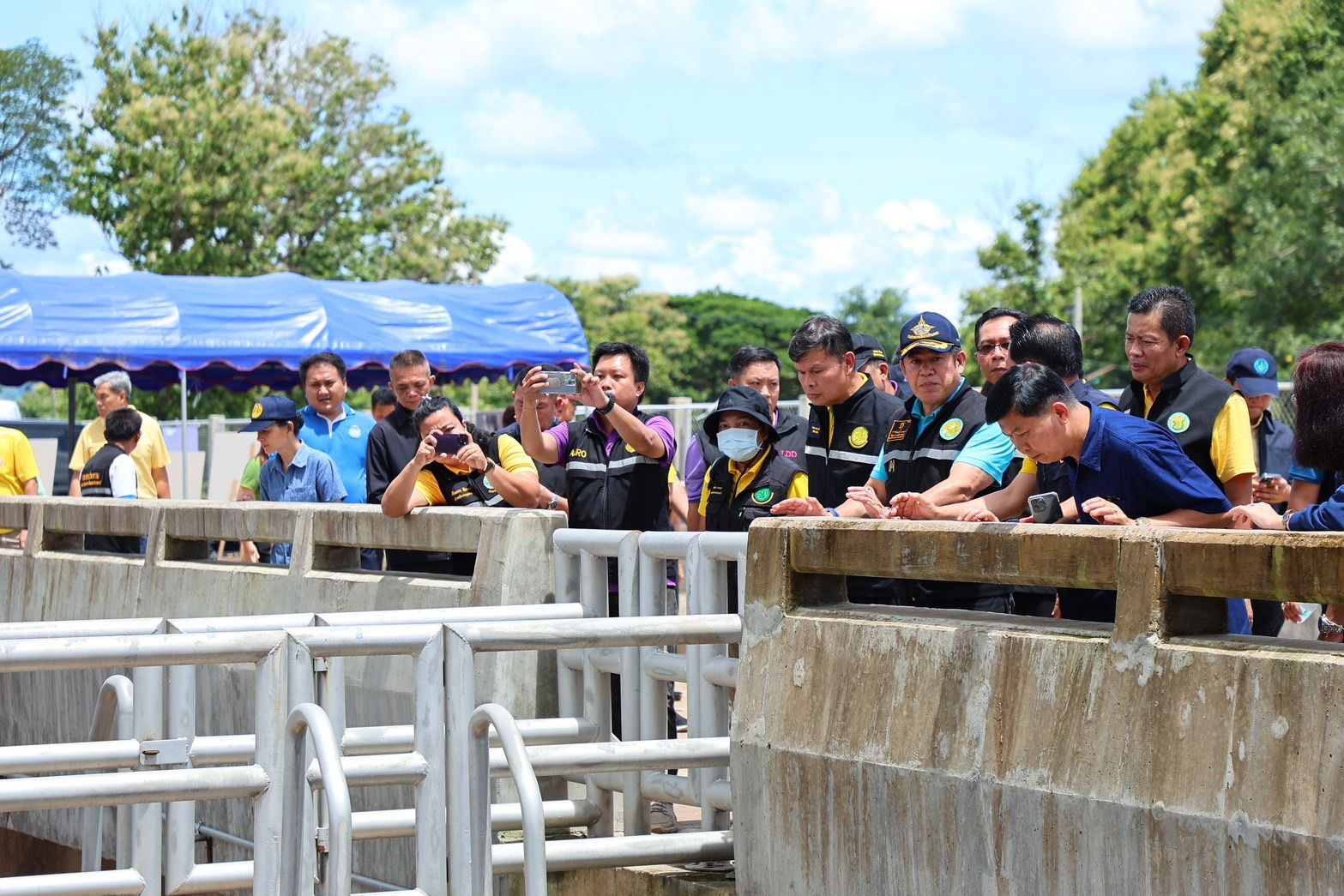 จากนั้น รมว.ธรรมนัสและคณะได้เดินทางต่อไปยังฝายแม่ยม อ.สอง จ แพร่เพื่อตรวจติดตามสถานการณ์น้ำและปัญหาอุทกภัยในพื้นที่จังหวัดแพร่ ซึ่งสถานการณ์แม่น้ำยม (ข้อมูล ณ วันที่ 24 ส.ค. 67 เวลา 10.00 น.) ที่สถานีวัดน้ำ Y.20 บ้านห้วยสัก อ.สอง จ.แพร่ ระดับน้ำลดลงกลับลงสู่ตลิ่งแล้ว ขณะที่ฝายแม่น้ำยม มีปริมาณน้ำไหลผ่าน 426 ลูกบาศก์เมตรต่อวินาที ระดับน้ำสูงกว่าตลิ่งประมาณ 79 เซนติเมตร ส่วนที่สถานี Y.1C (สะพานบ้านน้ำโค้ง) อ.เมืองแพร่ มีน้ำไหลผ่าน 1,400 ลบ.ม.ต่อวินาที ระดับน้ำยังสูงกว่าตลิ่งประมาณ 2.4 เมตร แนวโน้มเริ่มลดลง