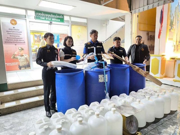 วันที่ 25 ส.ค. 2567 สรรพสามิตพื้นที่ กทม.5 ได้รับแจ้งว่าที่บ้านพัก ในซอยกาญจนาภิเษก 25 แยก 1-3 เขตสะพานสูง กรุงเทพมหานคร มีผู้ลักลอบผลิตสุราโดยไม่ได้รับอนุญาต จึงเข้าตรวจสอบตามที่ได้รับแจ้ง พบผู้ต้องหา2ราย แสดงตัวเป็นเจ้าของบ้าน เจ้าหน้าที่ตรวจค้น พบของกลางเป็นถังพลาสติก ขนาด 200 ลิตร 4 ถัง แกลลอนพลาสติก ขนาด 20 ลิตร 11 ถัง ปรอทแก้ว 1 อัน ภาชนะบรรจุสุรา 1 อัน กรวยพลาสติก 1 อัน แว่นขยาย 1 อัน เครื่องสูบน้ำ ขนาด 220 วัตต์ 1 เครื่อง ท่อพีวีซี พร้อมอุปกรณ์ปั๊มน้ำ 1 อัน น้ำสุราผสมบรรจุขวดขนาด 1.5 ลิตร 1 ขวด น้ำเปล่าบรรจุถังขนาด 20 ลิตร 10 ถัง เอทิลแอลกอฮอลบรรจุถัง 20 ลิตร 1 ถัง
