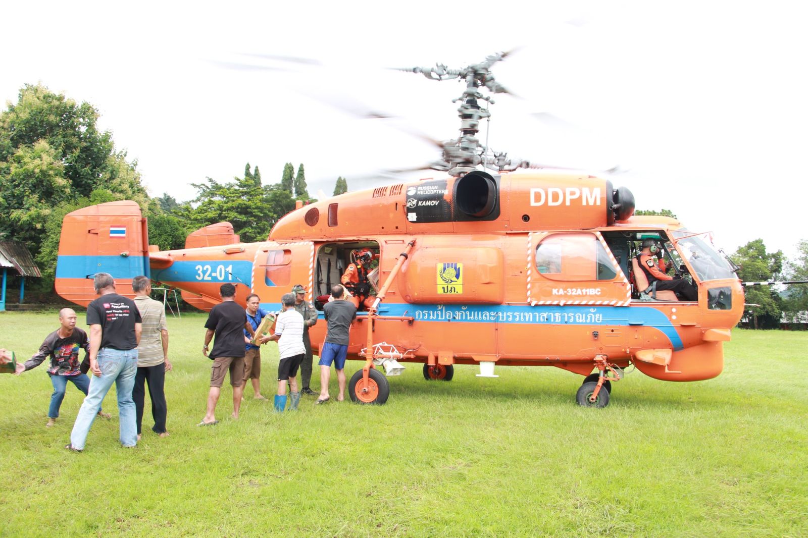 สำหรับจังหวัดเชียงรายมีพื้นที่ที่ประสบอุทกภัยเป็นบริเวณกว้าง การช่วยเหลือเป็นไปอย่างยากลำบาก ทางจังหวัดเชียงราย จึงได้ประสานเฮลิคอปเตอร์จากกรมป้องกันและบรรเทาสาธารณะภัยเพื่อลำเลียงสิ่งของช่วยเหลือประชาชน และติดตามสถานการณ์ในพื้นที่ประสบอุทกภัย ในจุดที่รถยนต์ไม่สามารถเข้าถึงได้