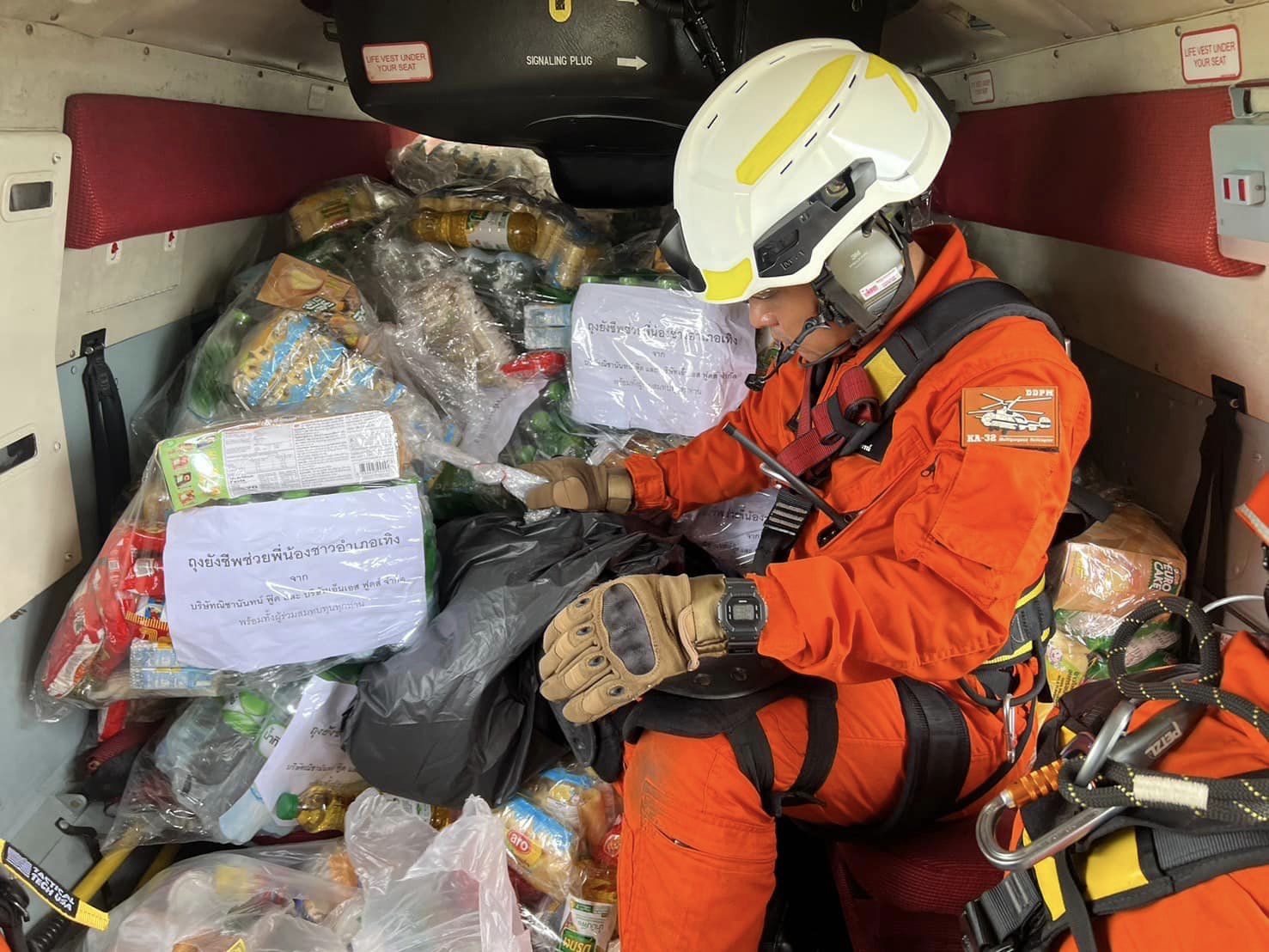 ปภ. นำสิ่งของ ถุงยังชีพจัดส่งทางอากาศ ช่วยเหลือผู้ประสบภัยน้ำท่วมที่อำเภอเทิง จังหวัดเชียงราย