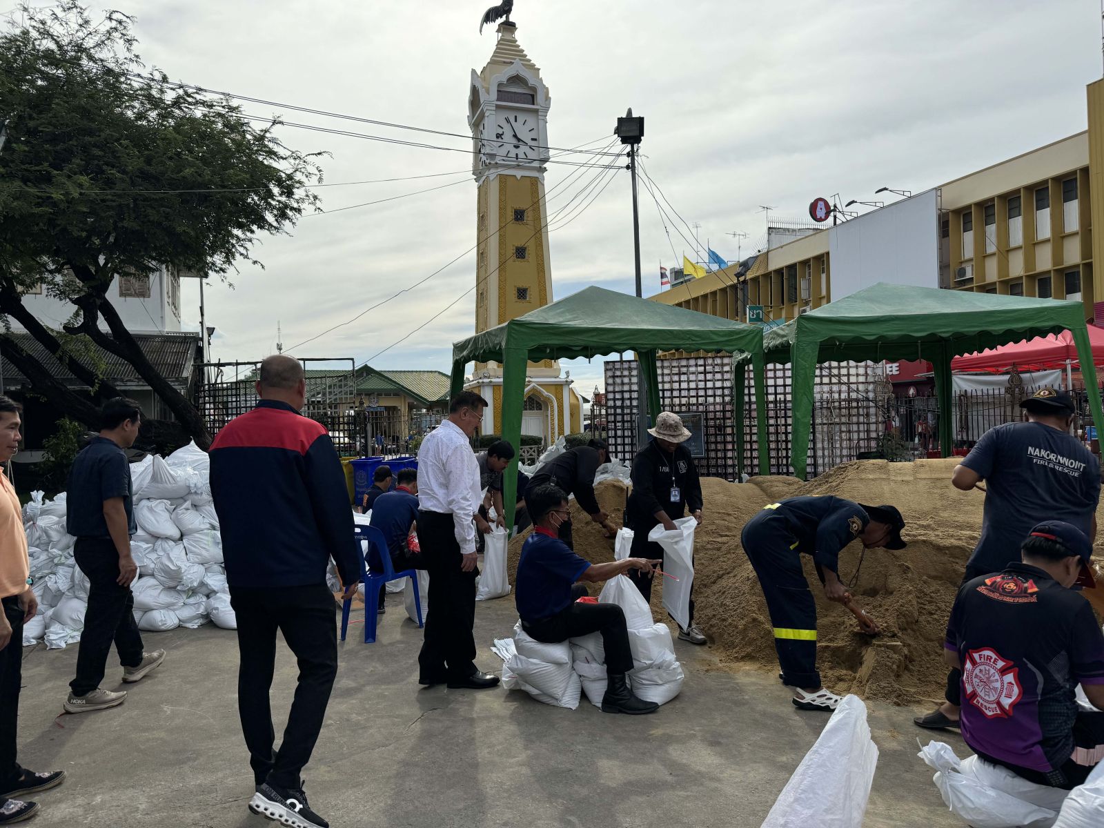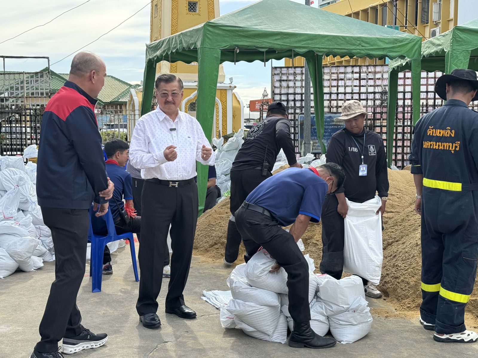 เมื่อเวลา 16.30 น.วันที่ 27 สิงหาคม 2567 ที่บริเวณลานด้านหน้าศาลากลางหลังเก่า ต.สวนใหญ่ อ.เมือง จ.นนทบุรี นายสมนึก ธนเดชากุล นายกเทศมนตรี นครนนทบุรี พร้อมทีมงานลงพื้นที่เตรียมเปิดศูนย์ป้องกันน้ำท่วม พร้อมทั้งเริ่มบรรจุกระสอบทราย 130,000 กระสอบ เพื่อป้องกันน้ำเหนือที่จะปล่อยเพิ่มปริมาณมากขึ้นในวันที่ 24-30 สิงหาคมนี้ โดยในวันที่ 30 สิงหาคม 2567 คาดการณ์ว่าน้ำในแม่น้ำเจ้าพระยาจะมีระดับสูงขึ้น 0.50-1.50 เมตร ซึ่งจะส่งผลกระทบต่อบ้านเรือนประชาชนริมตลิ่ง ทำให้เทศบาลนครนนทบุรีต้องเตรียมความพร้อมในการรับมือน้ำล้นตลิ่ง