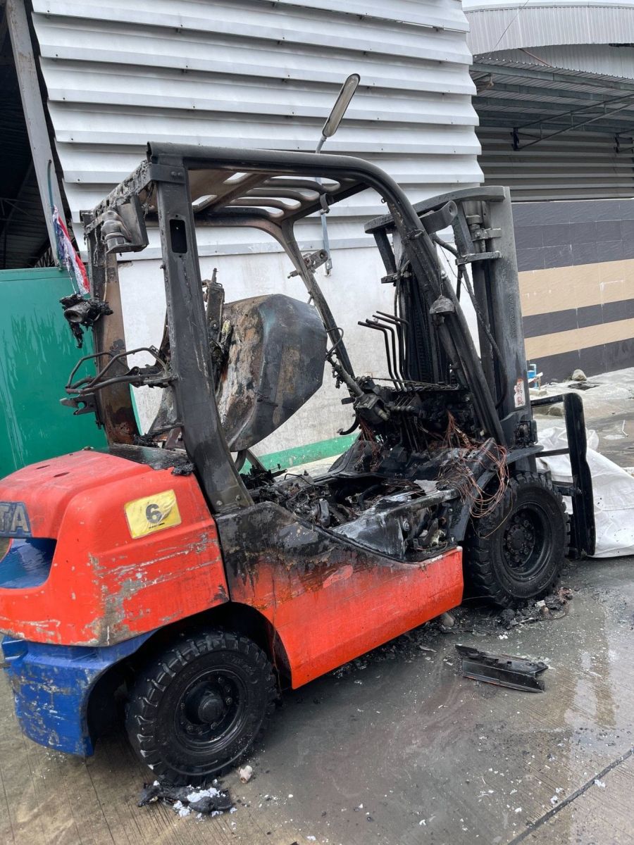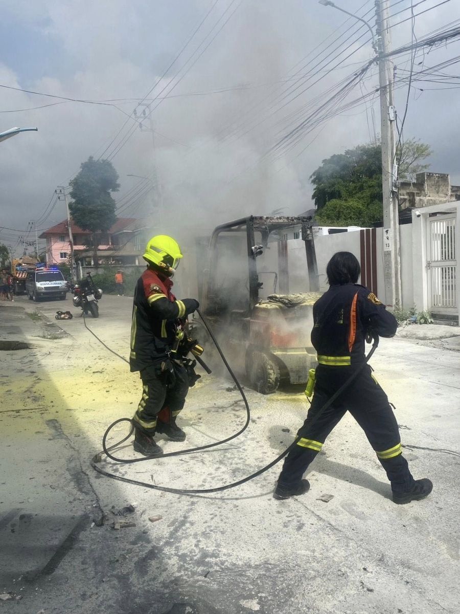 เพลิงไหม้รถโฟล์คลิฟท์ ซอยโพธิ์แก้ว เสียหายทั้งคัน