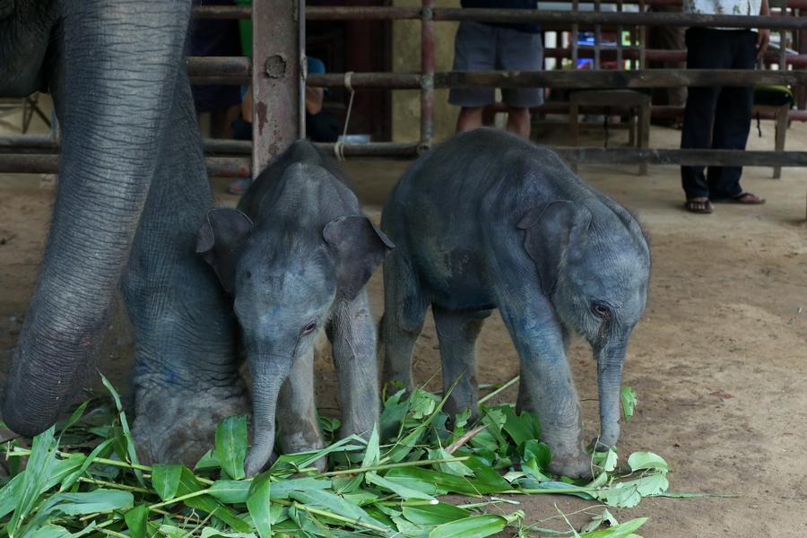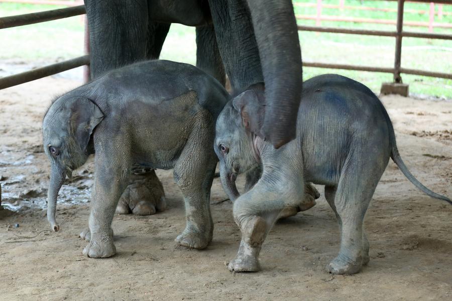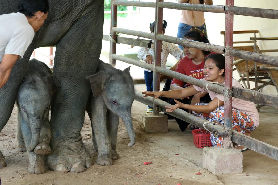 (แฟ้มภาพซินหัว : ลูกช้างฝาแฝดเกิดใหม่ที่ปางช้างหวิ่นกะบ่อในภูมิภาคพะโคของเมียนมา วันที่ 1 ก.ย. 2024)