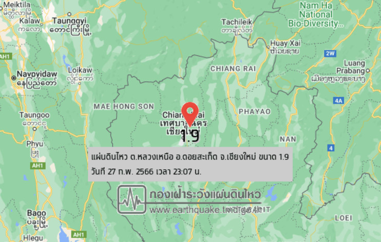 แผ่นดินไหว ขนาด 1.9 ที่จังหวัดเชียงใหม่